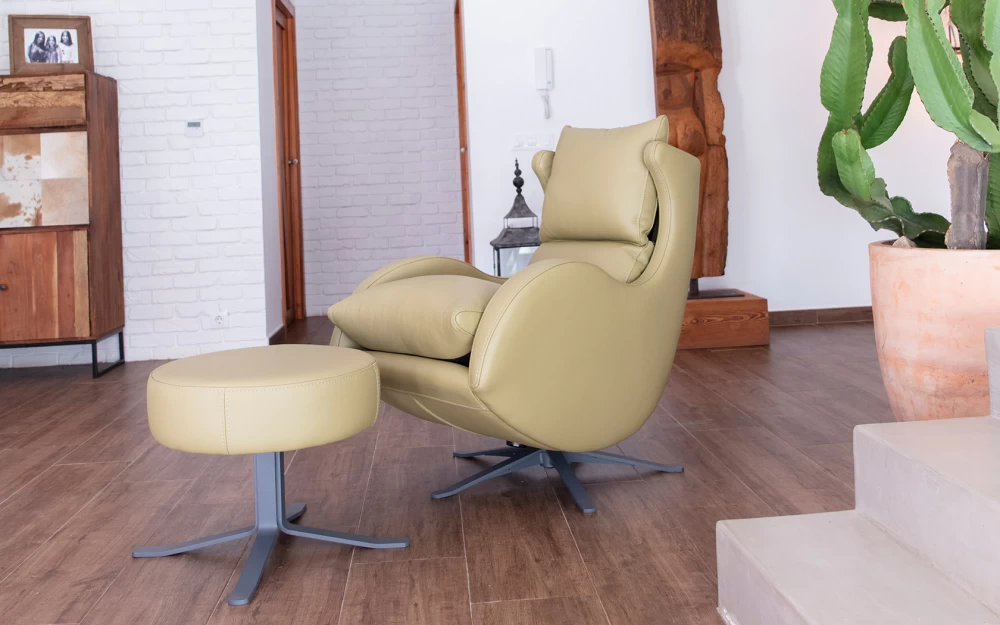 Lenny, пожалуй, наш самый знаковый дизайн, умная комбинация вогнутых и выпуклых кривых, которые создают уникальное и неповторимое кресло. Его сиденье и подушки спинки предлагают невероятный комфорт. Основание представляет собой поворотный и качающийся механизм. Круглая подставка для ног - идеальный аксессуар, чтобы сделать Lenny удивительно комфортным предметом.