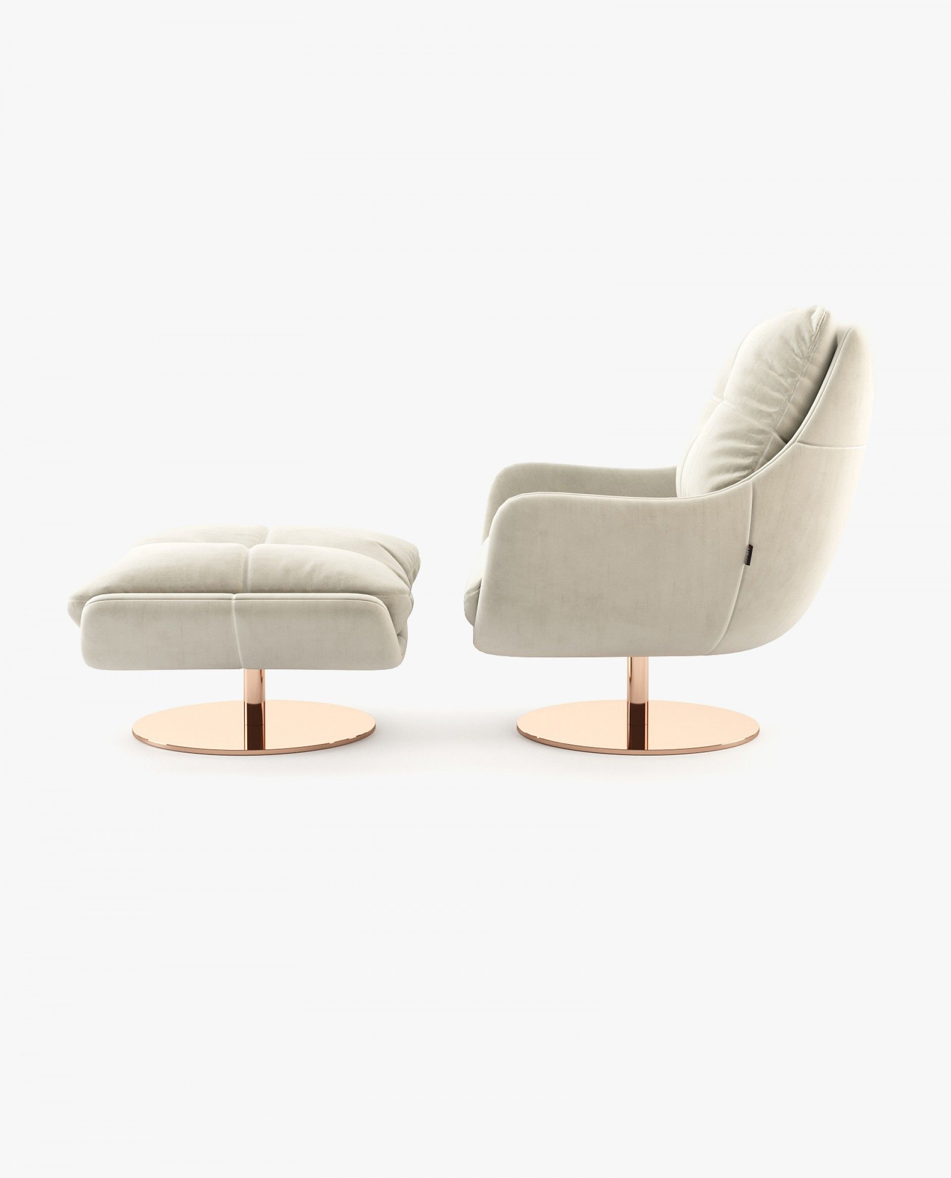 Sophia – это современное мягкое кресло с обитым сиденьем и металлическим основанием, а также отлично сочетается с пуфиком из той же серии. Удобный предмет и незаменимый элемент дизайна вашего интерьера, который можно полностью кастомизировать по своему вкусу.