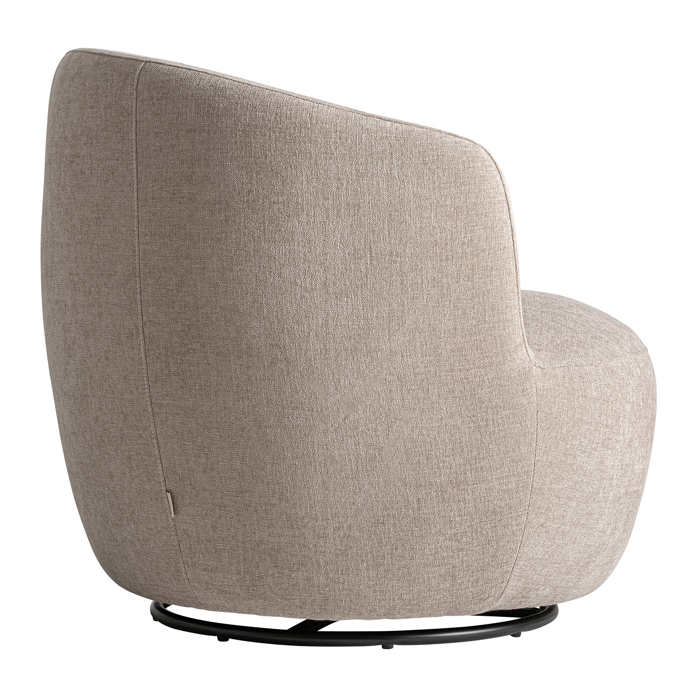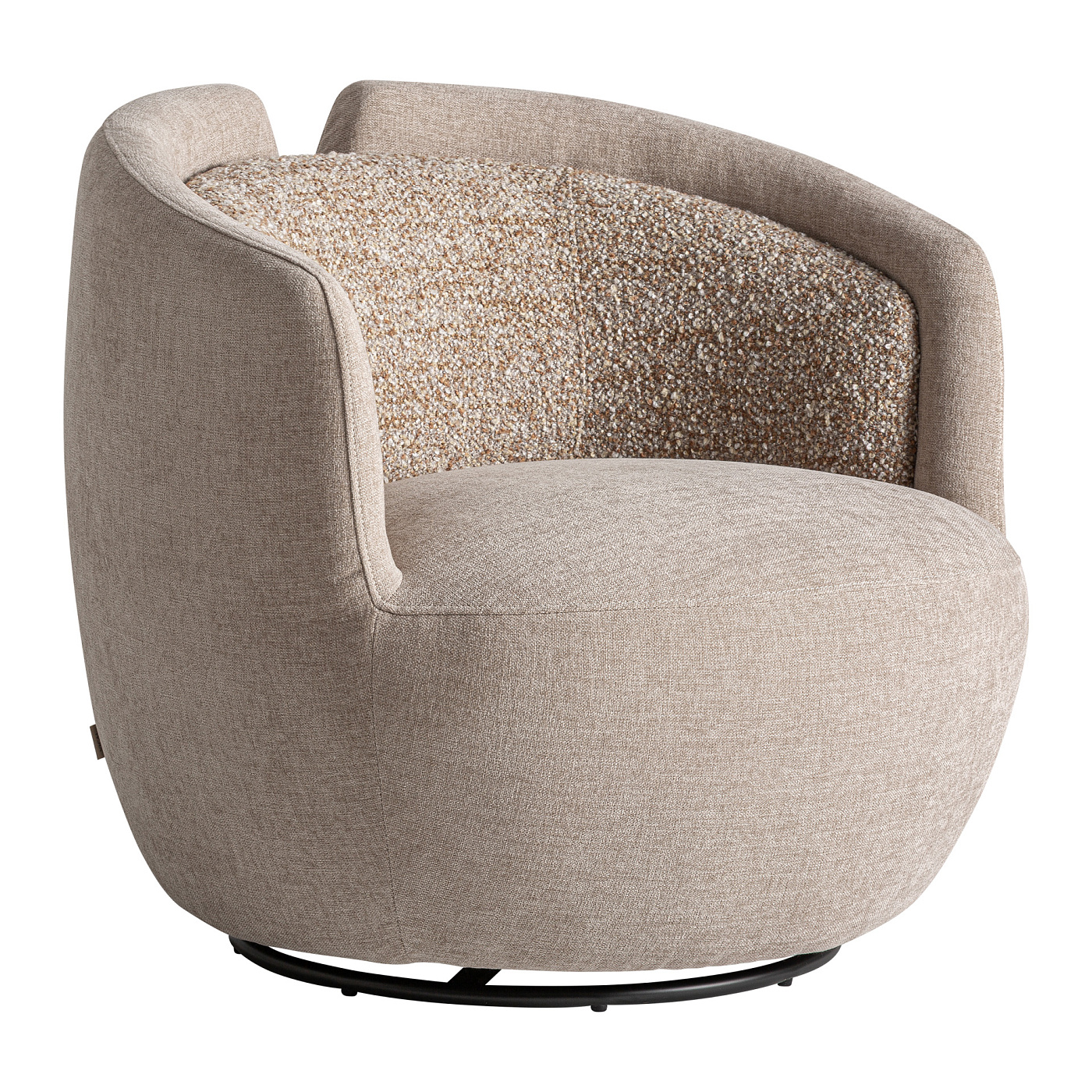 Вращающееся кресло, изготовленное из полиэстера бежевого цвета с отделкой из синели, в сочетании с черным железом и сосновой древесиной. Ширина: 85 см, Глубина: 82 см, Высота: 76 см