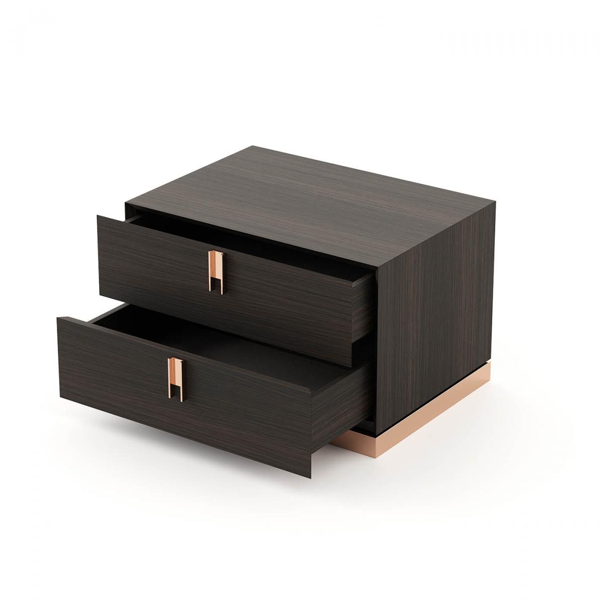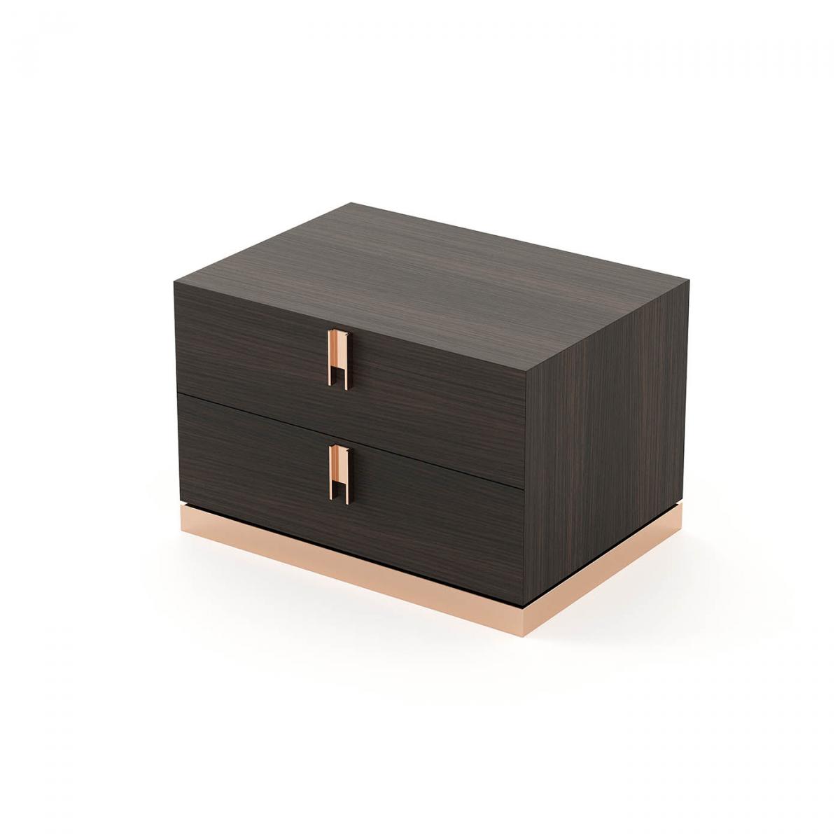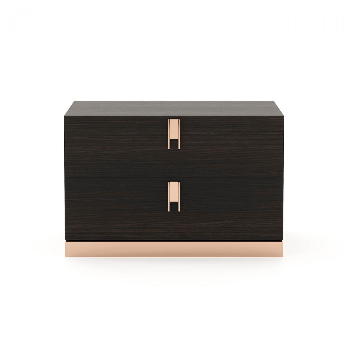 Деревянная прикроватная тумбочка с металлическими ручками из коллекции Emily. Отличное дополнение для декора спальни, которая нуждается в прикосновение комфорта и роскоши.