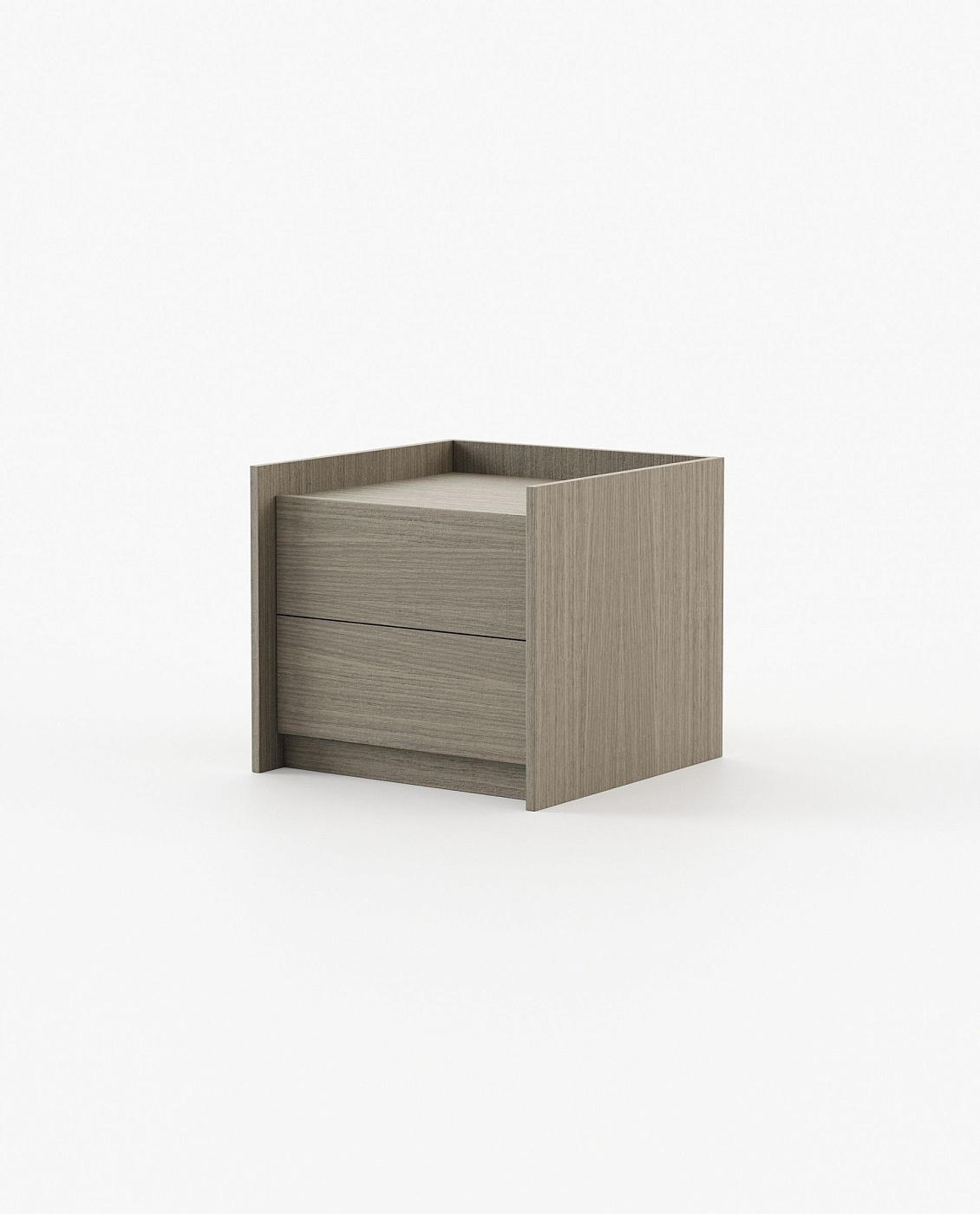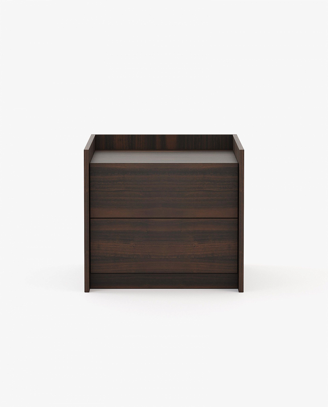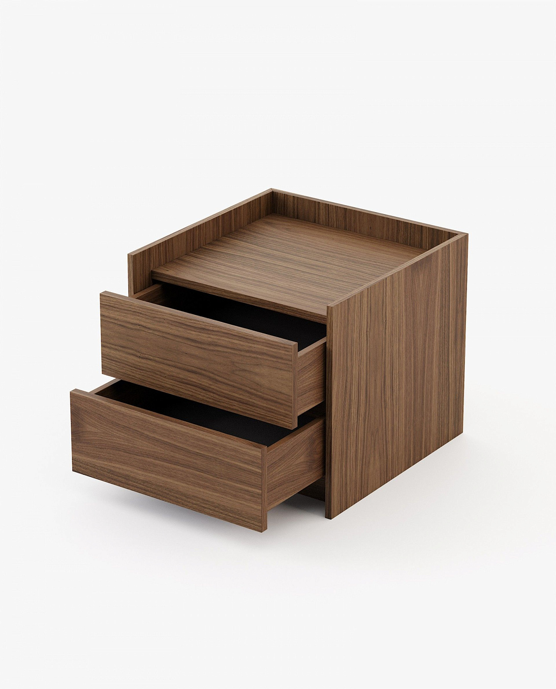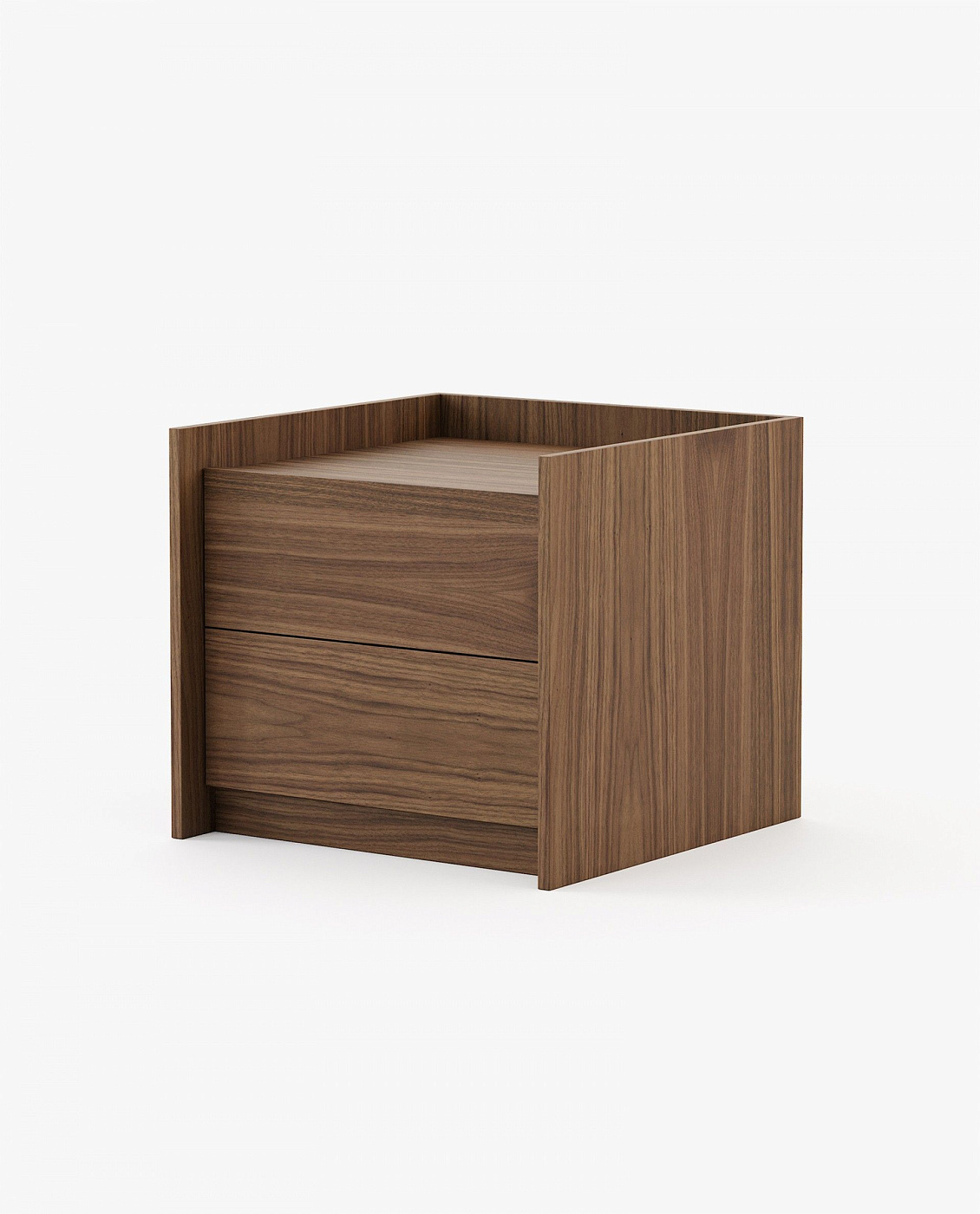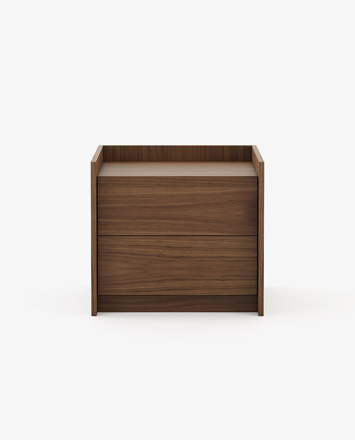Деревянная прикроватная тумба с 2 выдвижными ящиками из коллекции Endy, конструкция которой выступает из блока выдвижных ящиков, обеспечивая боковую защиту сверху и свежий минималистичный дизайн.