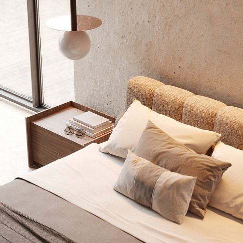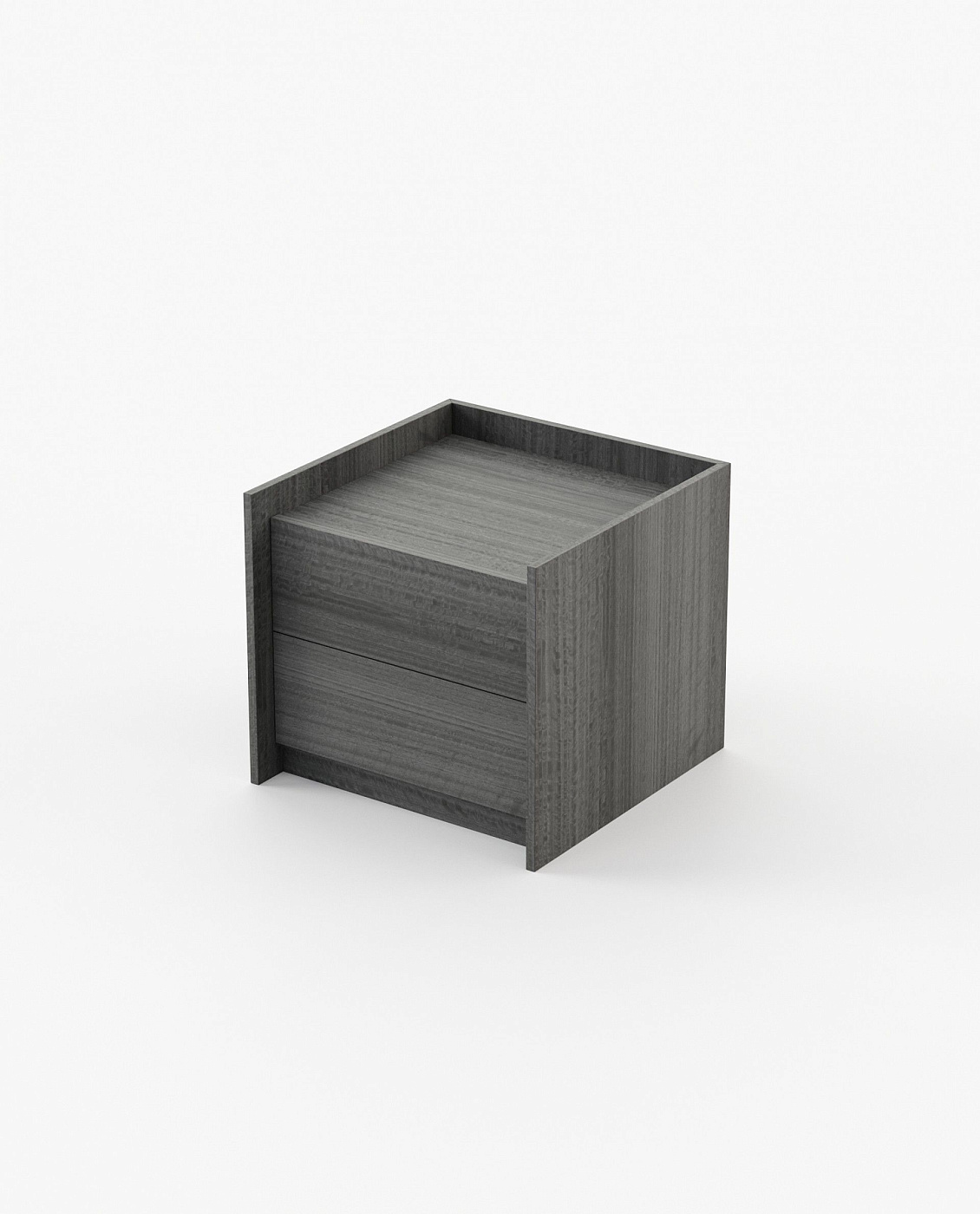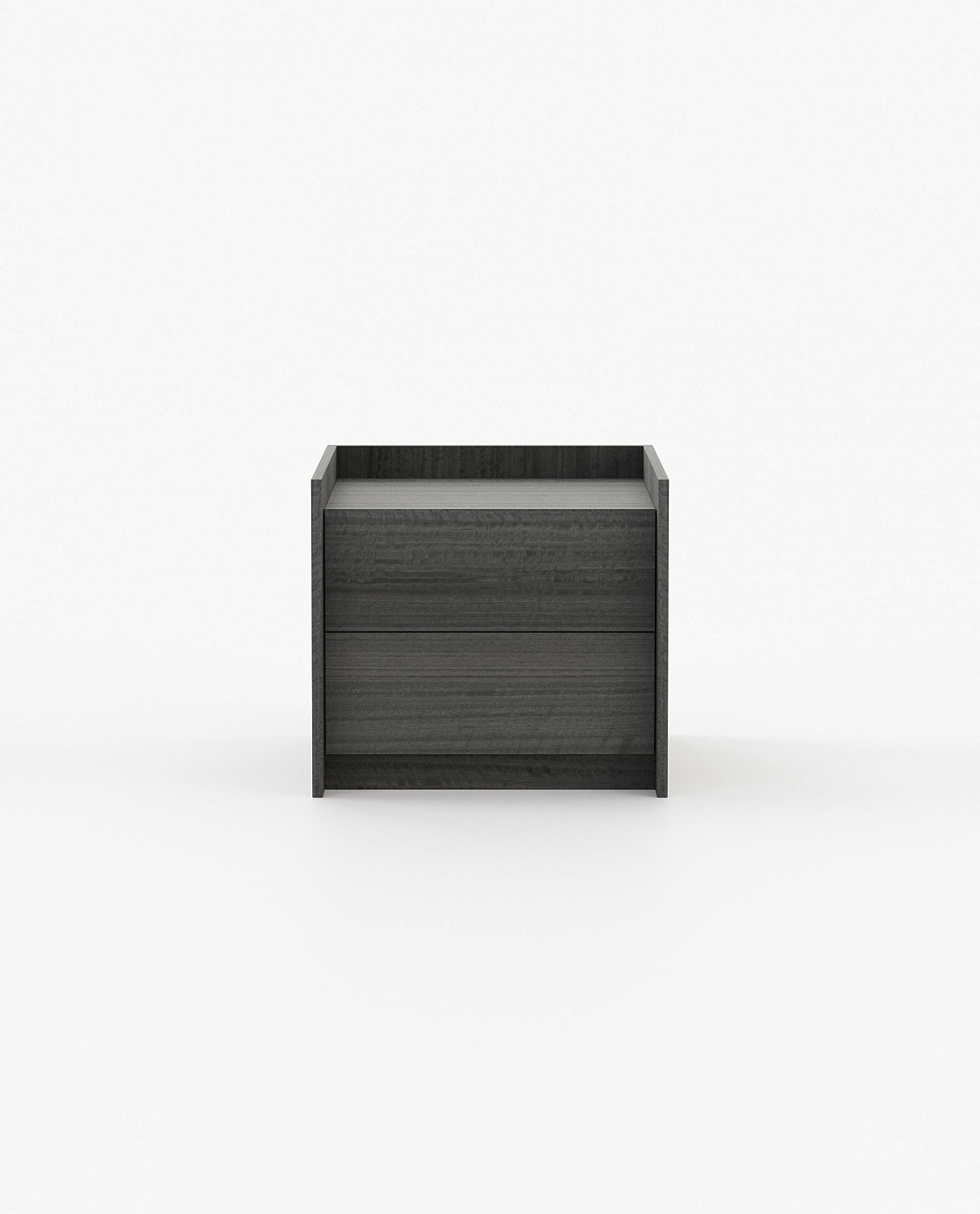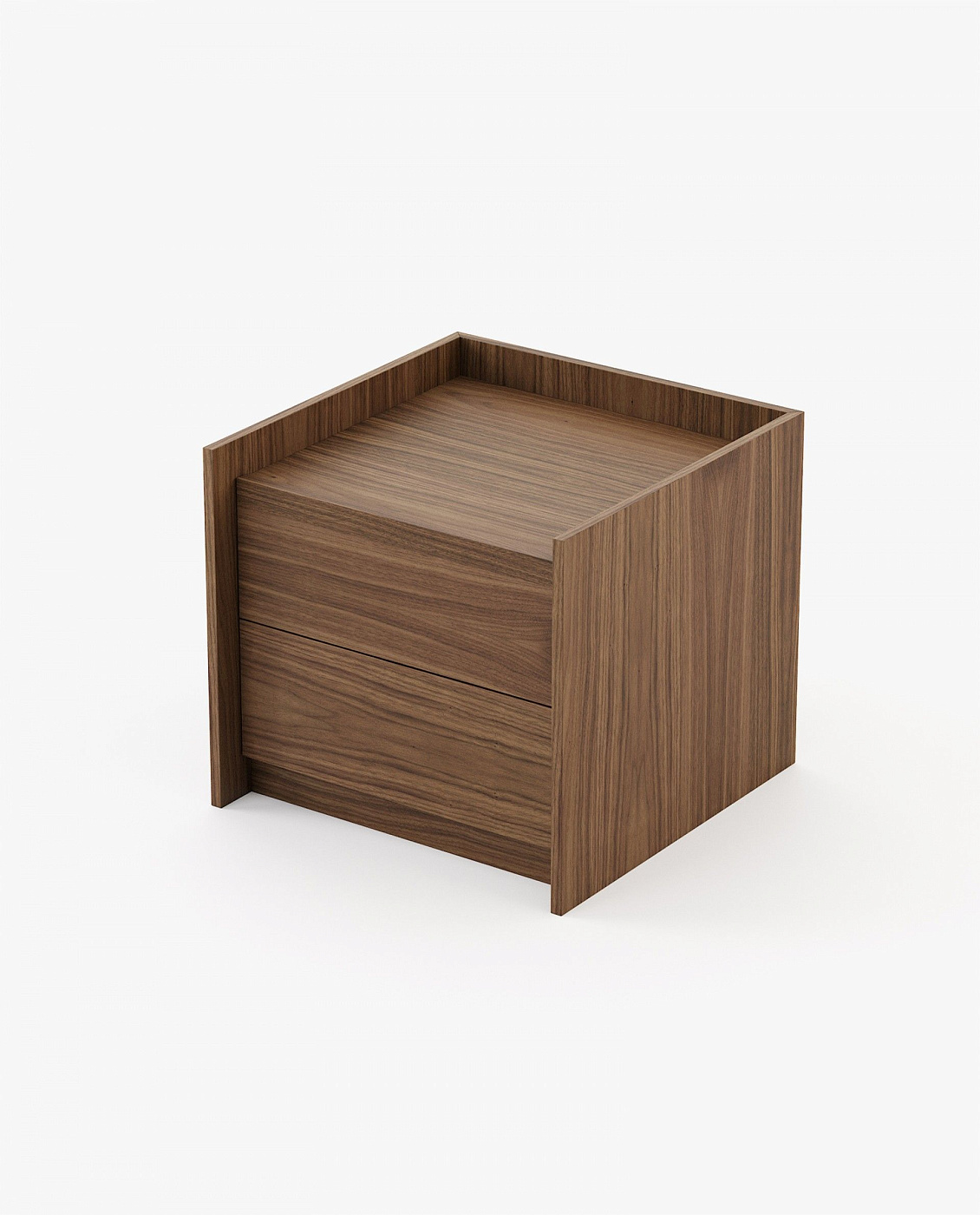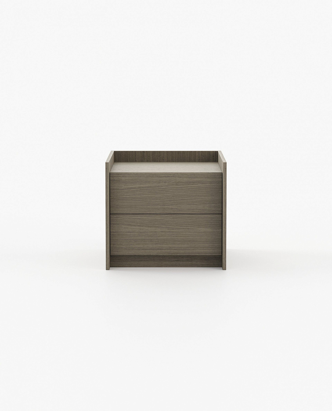 Деревянная прикроватная тумба с 2 выдвижными ящиками из коллекции Endy, конструкция которой выступает из блока выдвижных ящиков, обеспечивая боковую защиту сверху и свежий минималистичный дизайн.