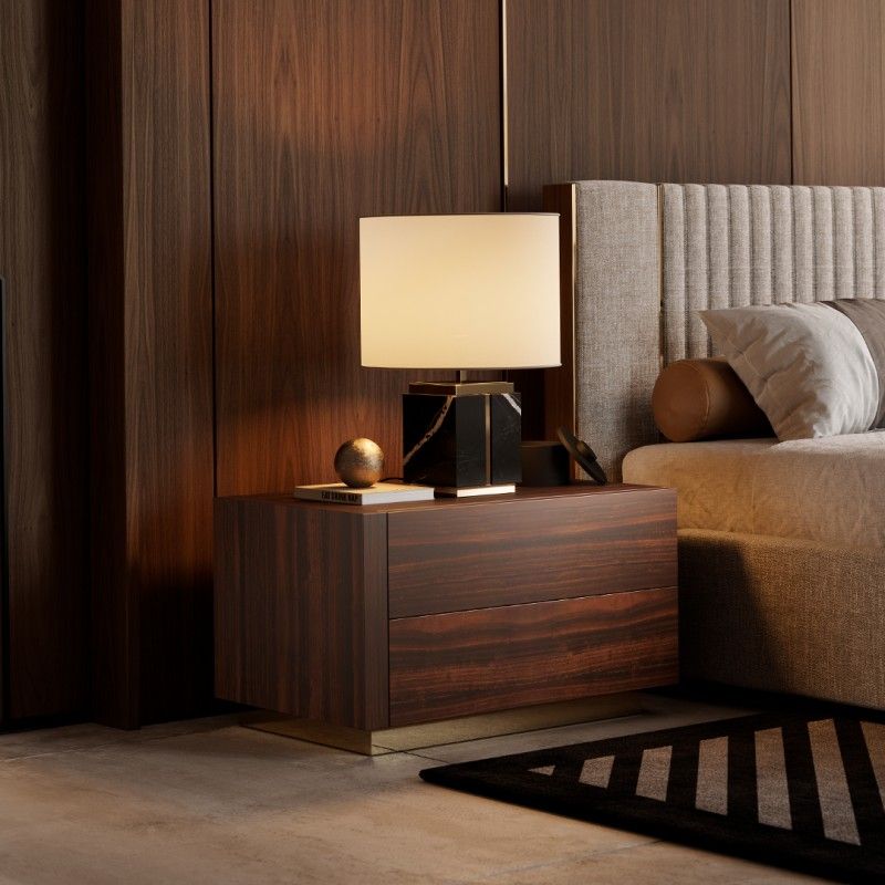 Прикроватная тумба Kira, изготовлена из дерева с гладким металлическим подножием. Свежий дизайн для спальни, который освежит все декоративные элементы вашего декора.