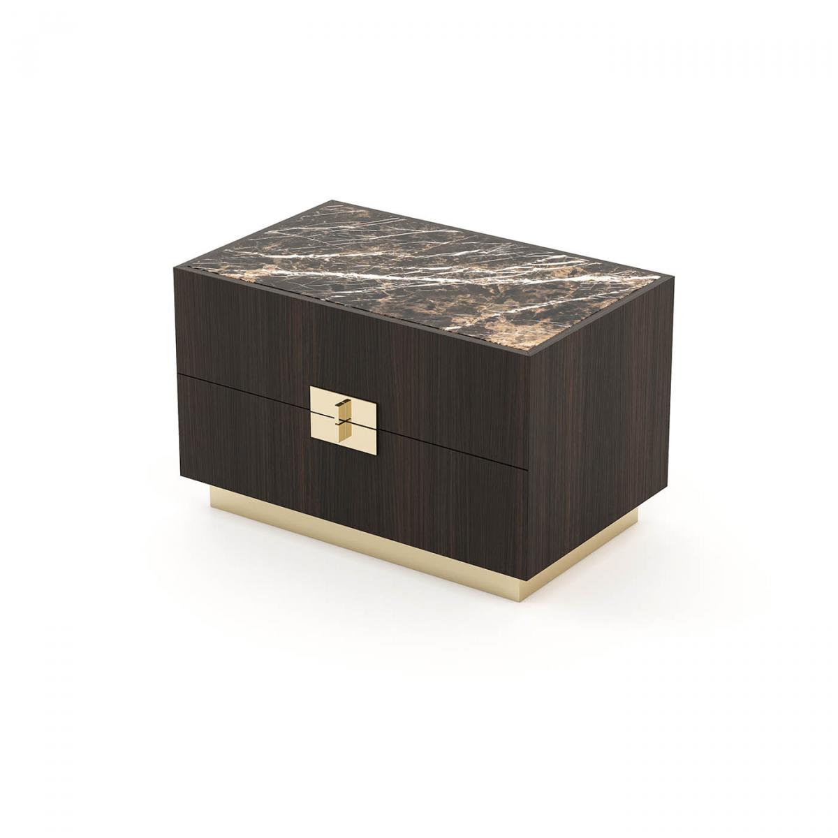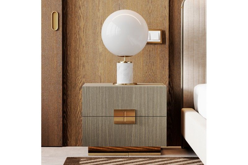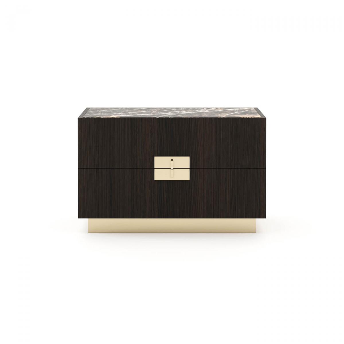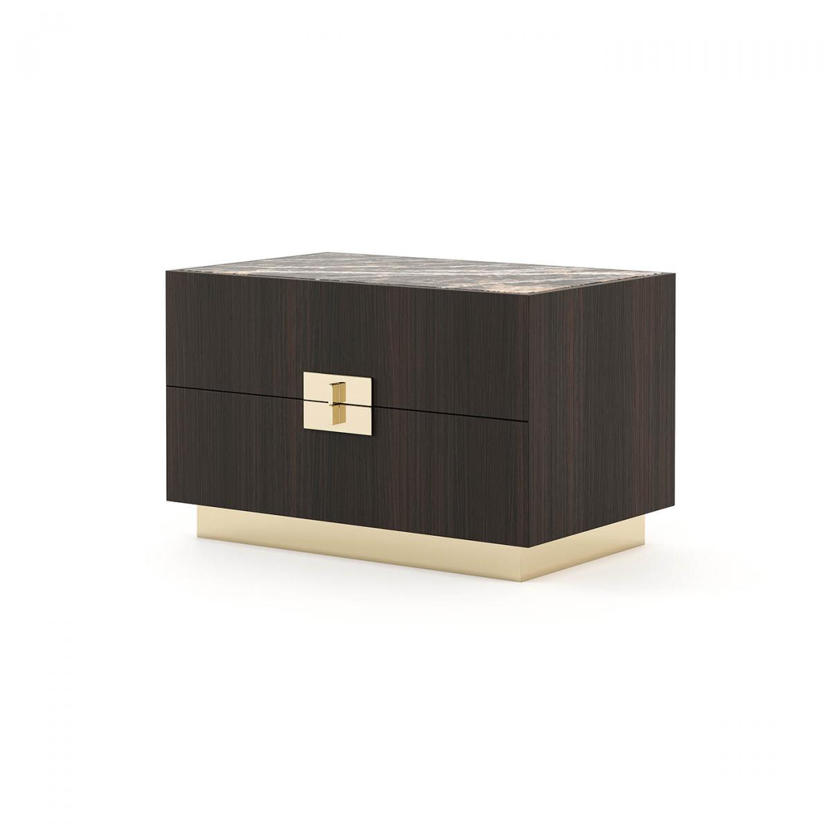 Деревянная прикроватная тумбочка с металлическими основанием и ручками из коллекции Lady. Ручки находятся тесно друг ко другу, создавая безопасный эффект для изделия.