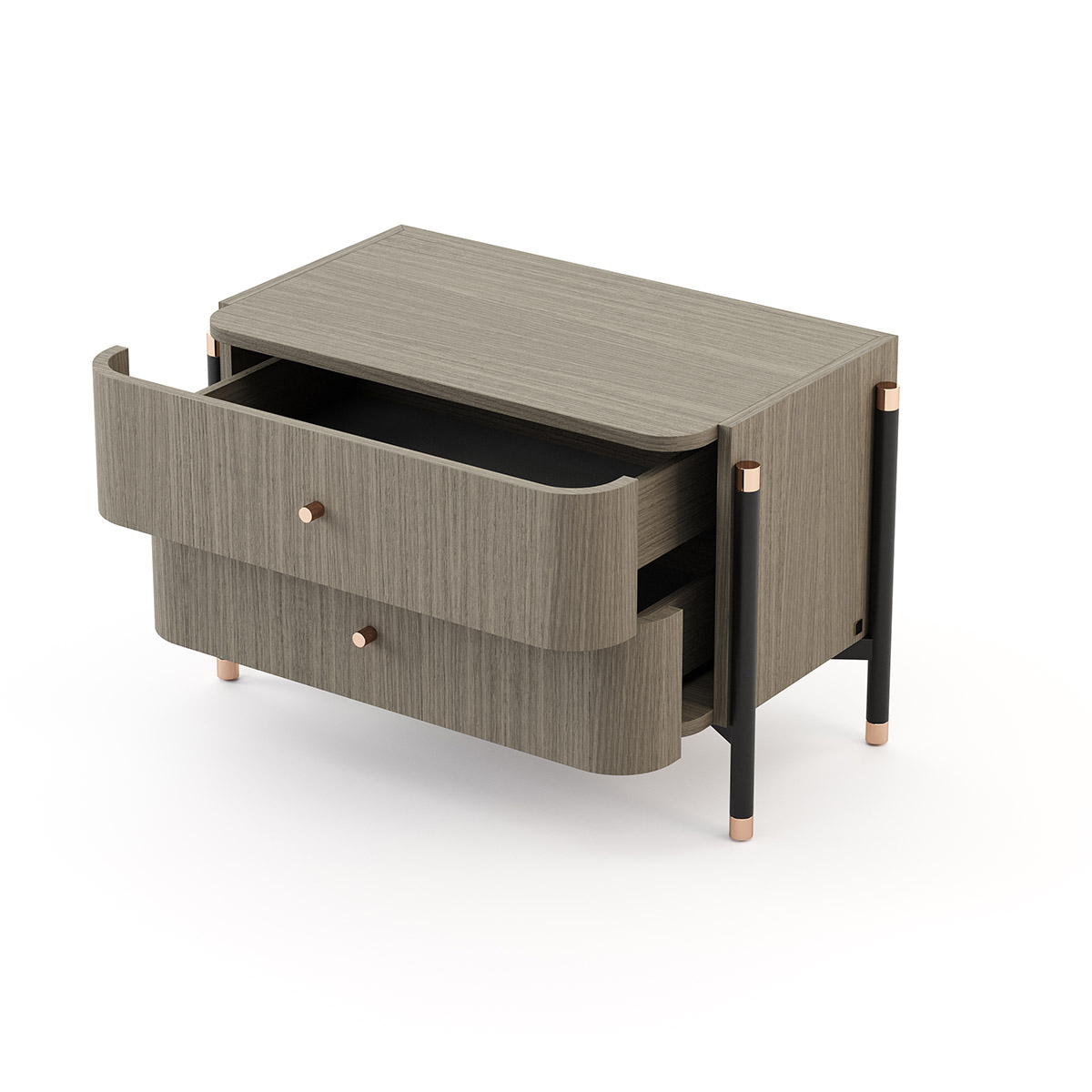 Rosie – это деревянная прикроватная тумбочка с ножками и металлическими ручками, выполненная из дерева и со структурой из кованого железа. Он имеет два выдвижных ящика и изготавливается в двух разных размерах, поэтому вы никогда не ошибетесь.