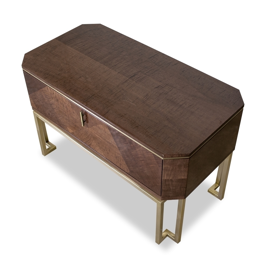 Прикроватная тумбочка Bond — это прекрасное сочетание элегантности и функциональности. Эта тумбочка органично вписывается в хорошо продуманный интерьер спальни и доступна в трёх размерах с деревянной или мраморной столешницей. Неровные пластины спереди и уникальная форма делают её роскошным предметом интерьера.