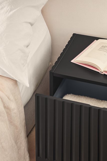Прикроватная тумбочка вдохновлена архитектурными традициями классической Греции. Его вертикальные канавки отражают простоту и прочность, характерные для этого периода, стремясь к красоте и пропорциональности классических архитектурных заповедей.