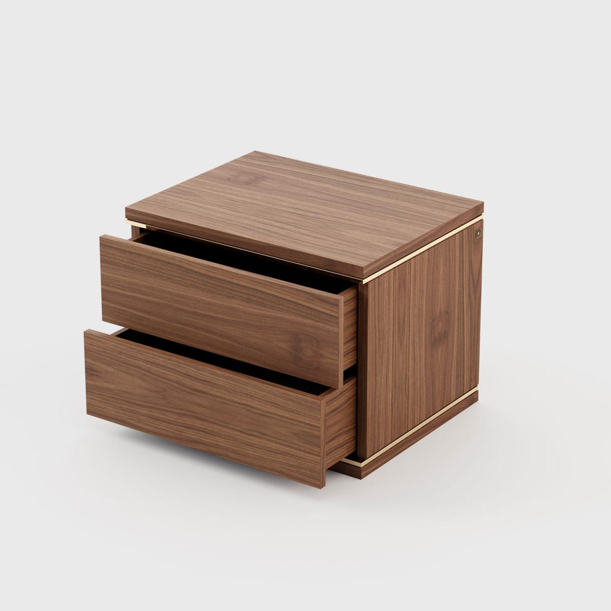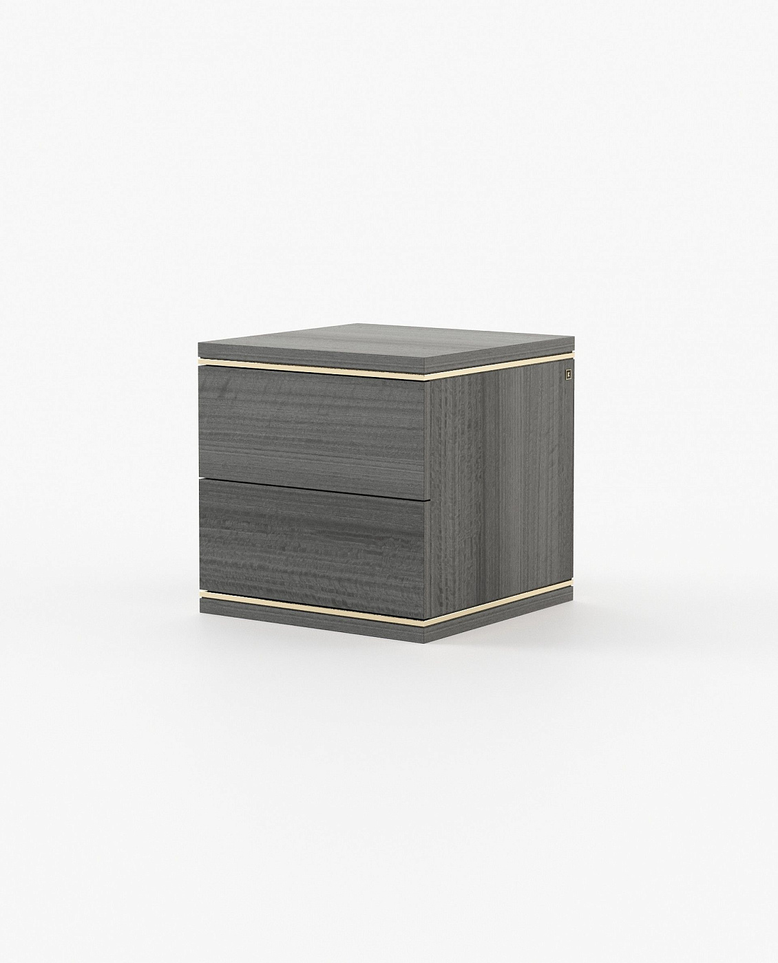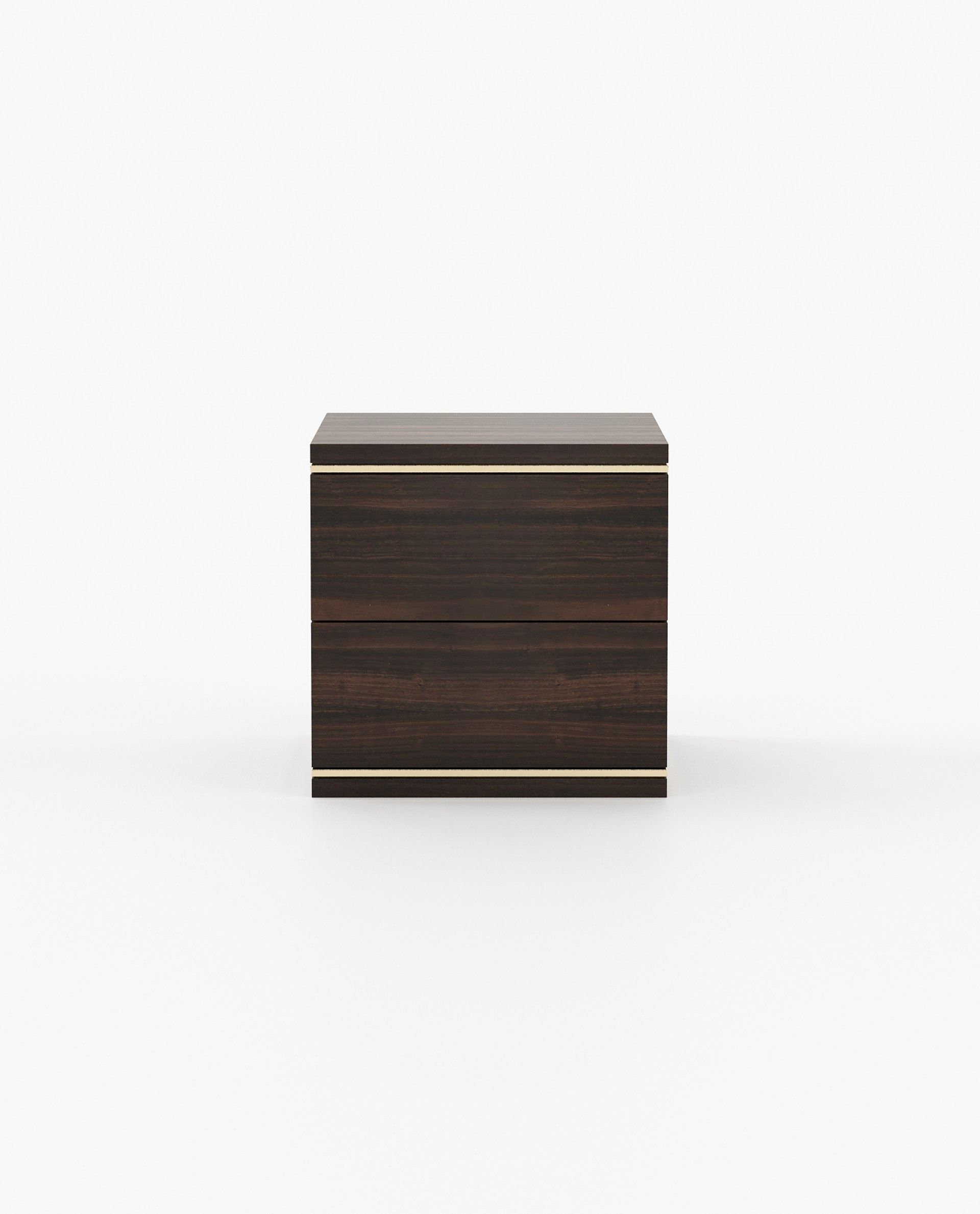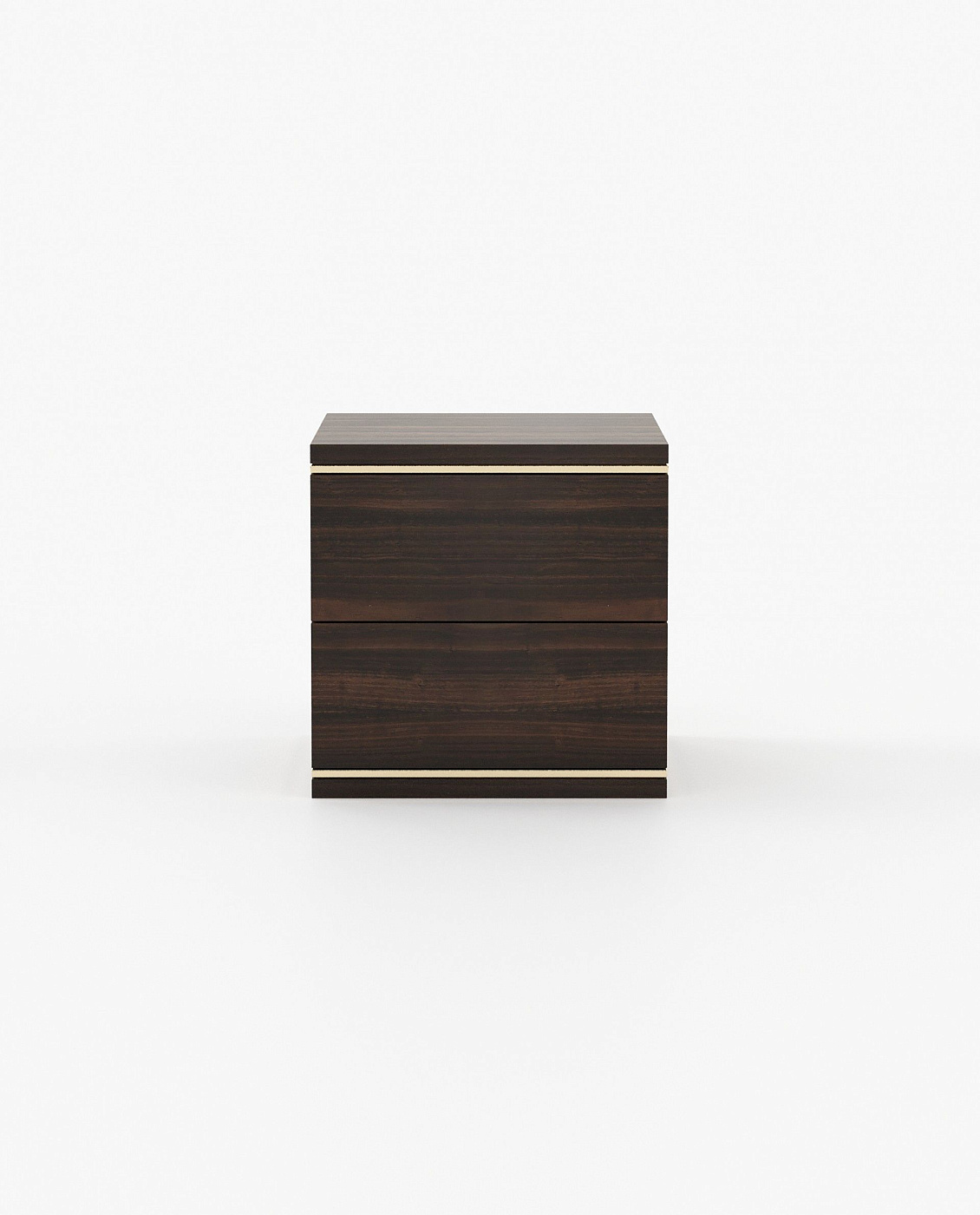 Прикроватная тумба Duane выполнена из дерева и с акцентом на золотом фризе. Элегантная металлическая деталь контрастирует с благородным тоном, что делает дизайн изделия идеальным выбором для широкого спектра интерьеров.