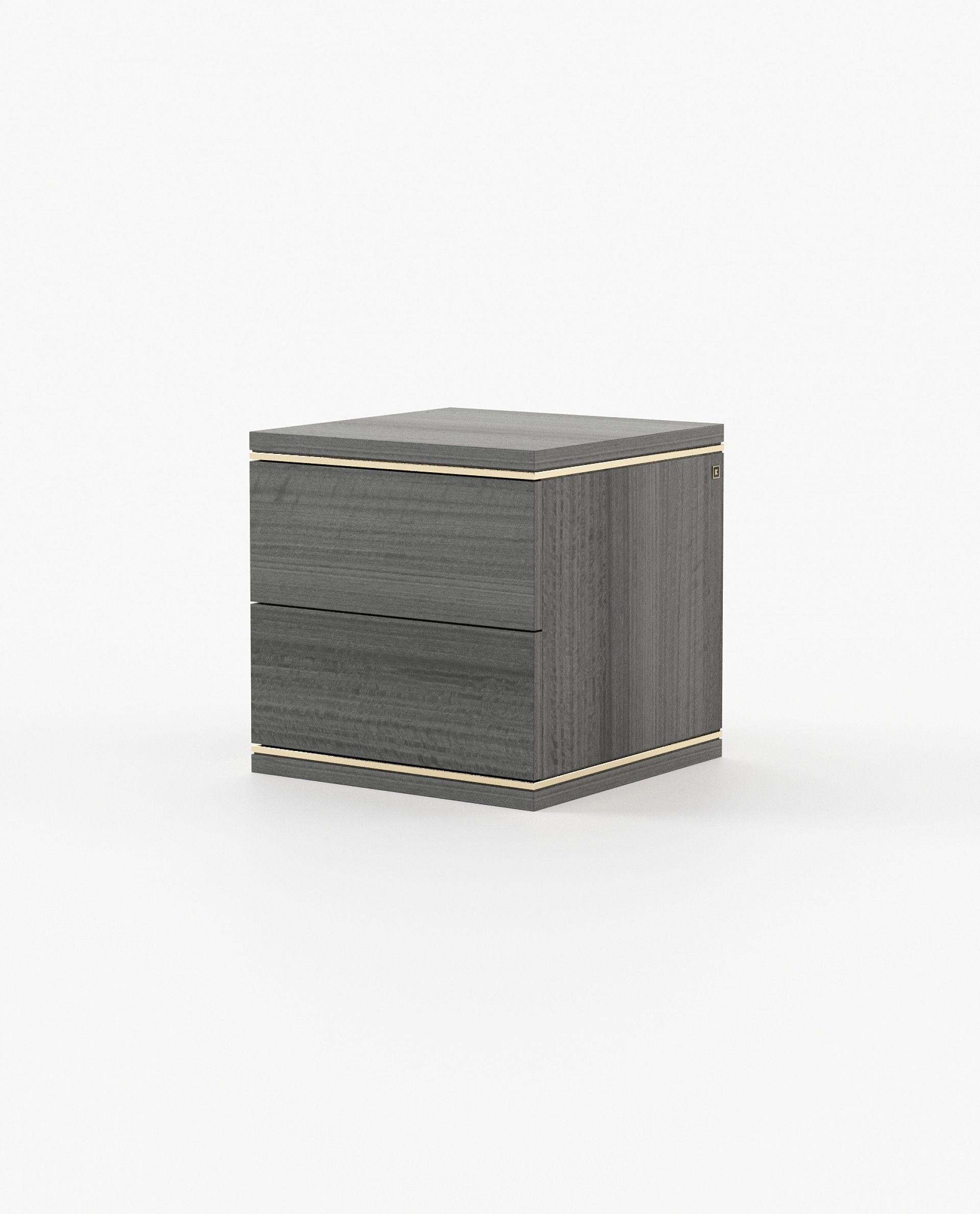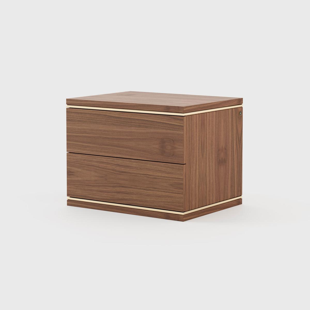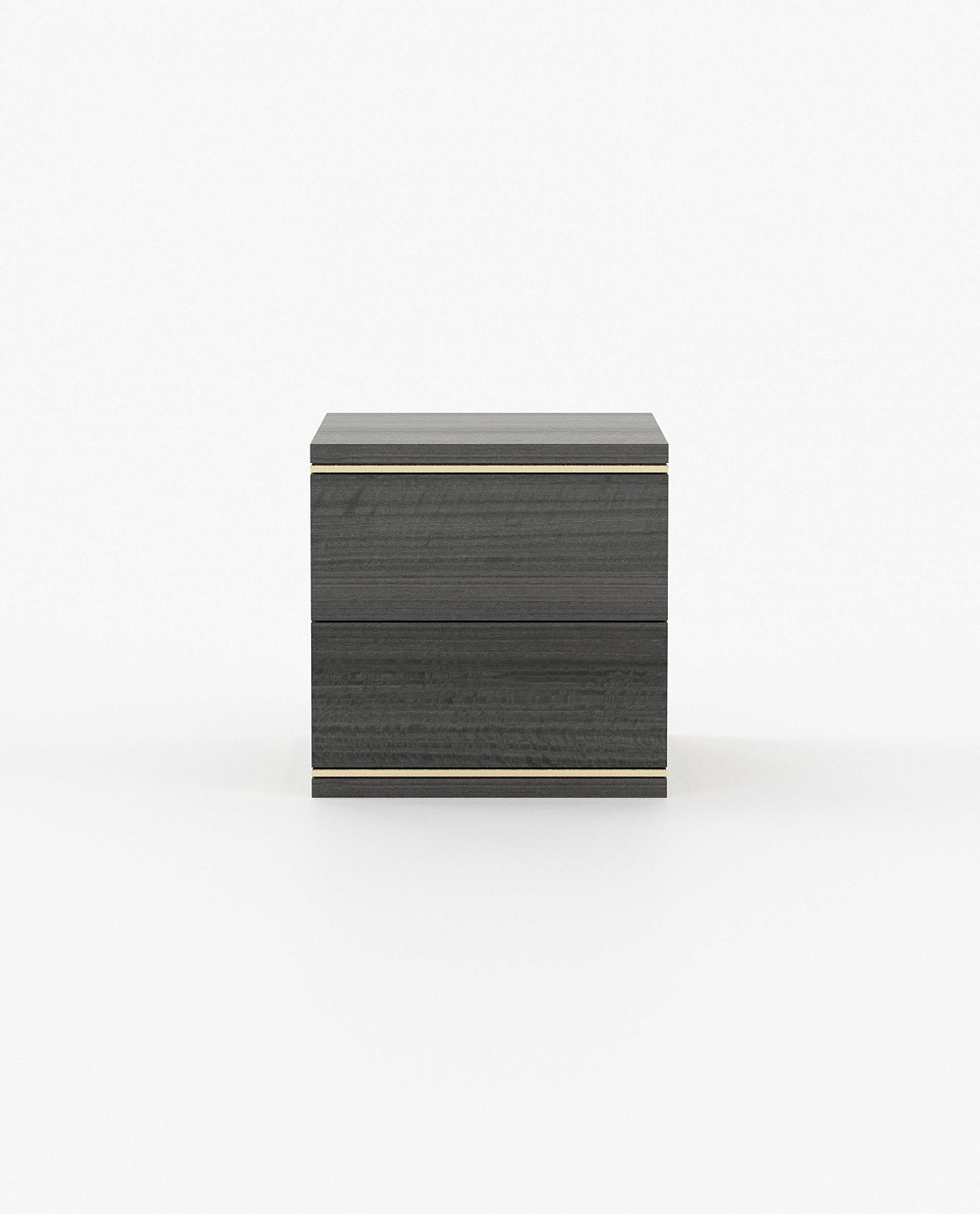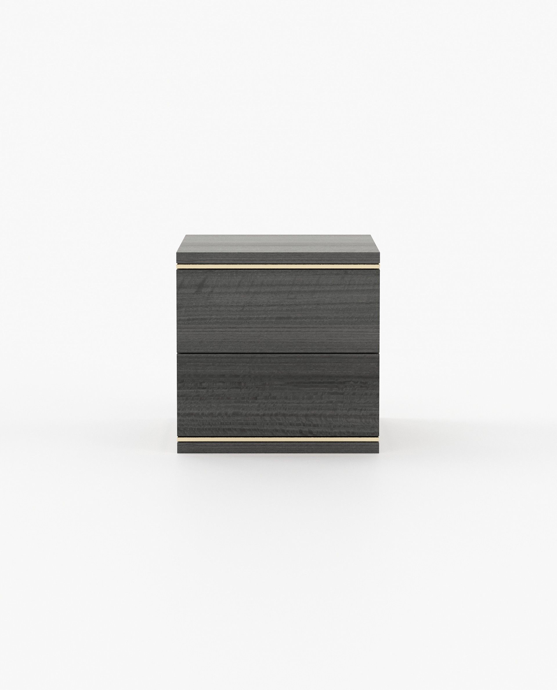 Прикроватная тумба Duane выполнена из дерева и с акцентом на золотом фризе. Элегантная металлическая деталь контрастирует с благородным тоном, что делает дизайн изделия идеальным выбором для широкого спектра интерьеров.