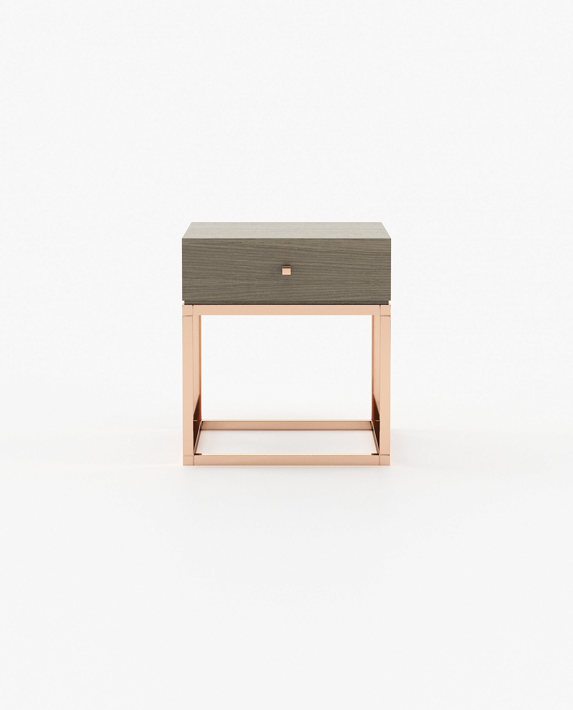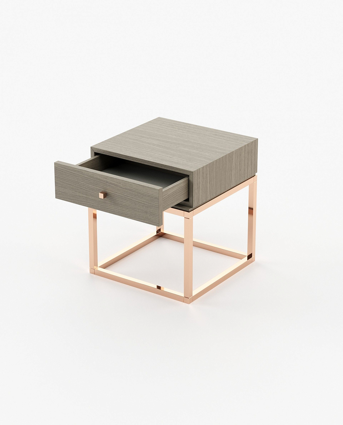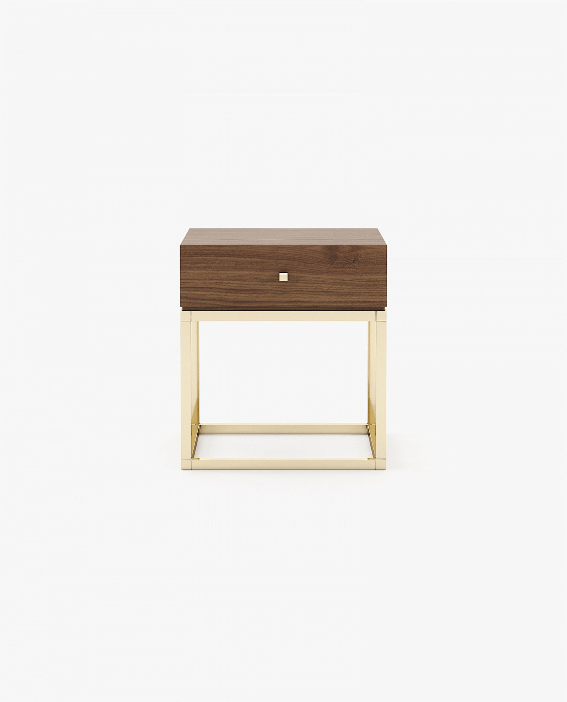 Ester – прикроватная тумбочка с деревянным ящиком и металлическим каркасом. Блестящие оттенки металла и цельная структура превращают этот предмет в современный и роскошный дизайн.