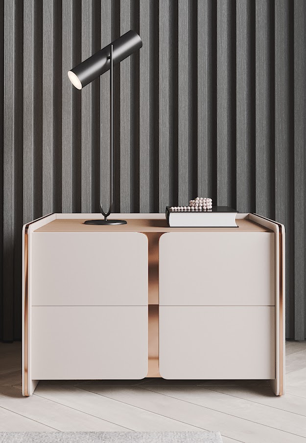 Элегантная форма и плавные линии прикроватного столика Havasu следуют эстетическому языку райского водопада, который его характеризует. Структурные изогнутые края, объединяющие два ящика с инкрустированными металлическими деталями, делают этот стильный прикроватный столик подходящим предметом для интеграции в любую современную или современную атмосферу.