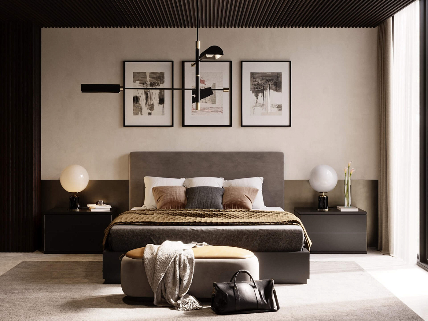 Mucala — это широкая тумбочка, воплощающая простоту и чистые линии. С двумя просторными ящиками для хранения и возможностью персонализации в широком диапазоне материалов, она идеально подходит для дизайнеров интерьера, ищущих универсальные и элегантные решения для современных дизайнов спальни.