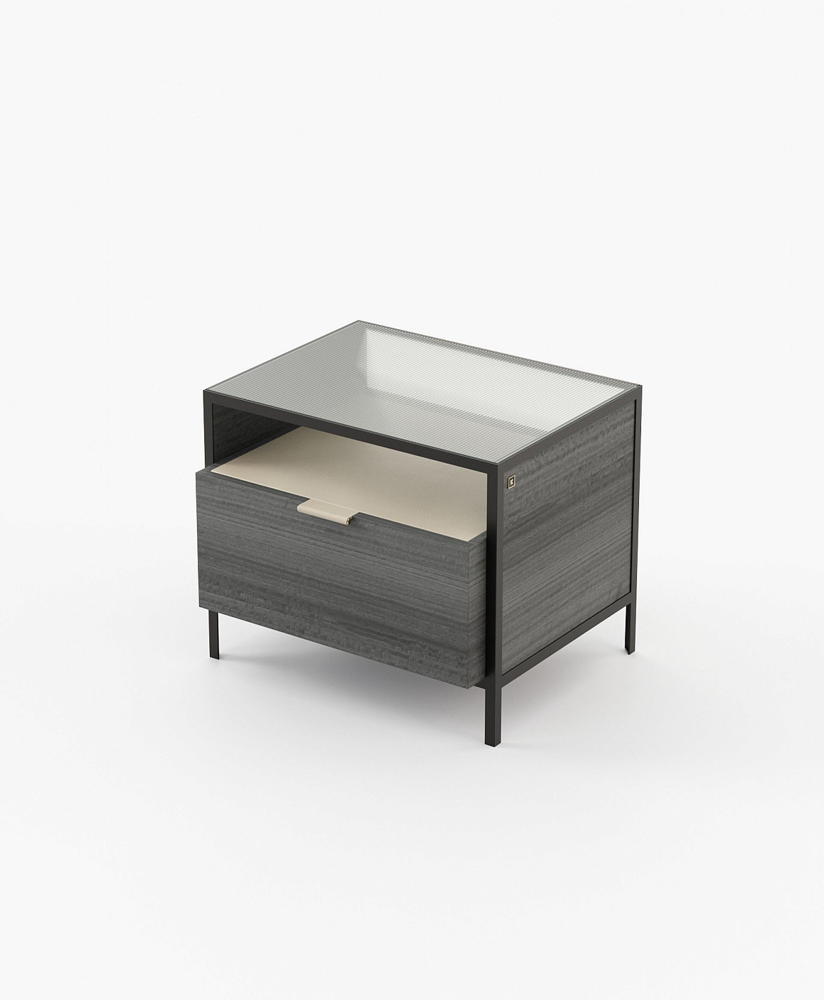 Прикроватная тумбочка Rowling с вместительным выдвижным ящиком и открытой полкой обеспечивает хранение всего необходимого и придает спальне нотку современной элегантности.
