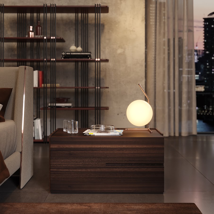 Красота и современность в деталях. Простые линии прикроватных столиков Valley и отличительные прорезные ручки делают их современным потрясающим предметом, который украсит любую спальню.