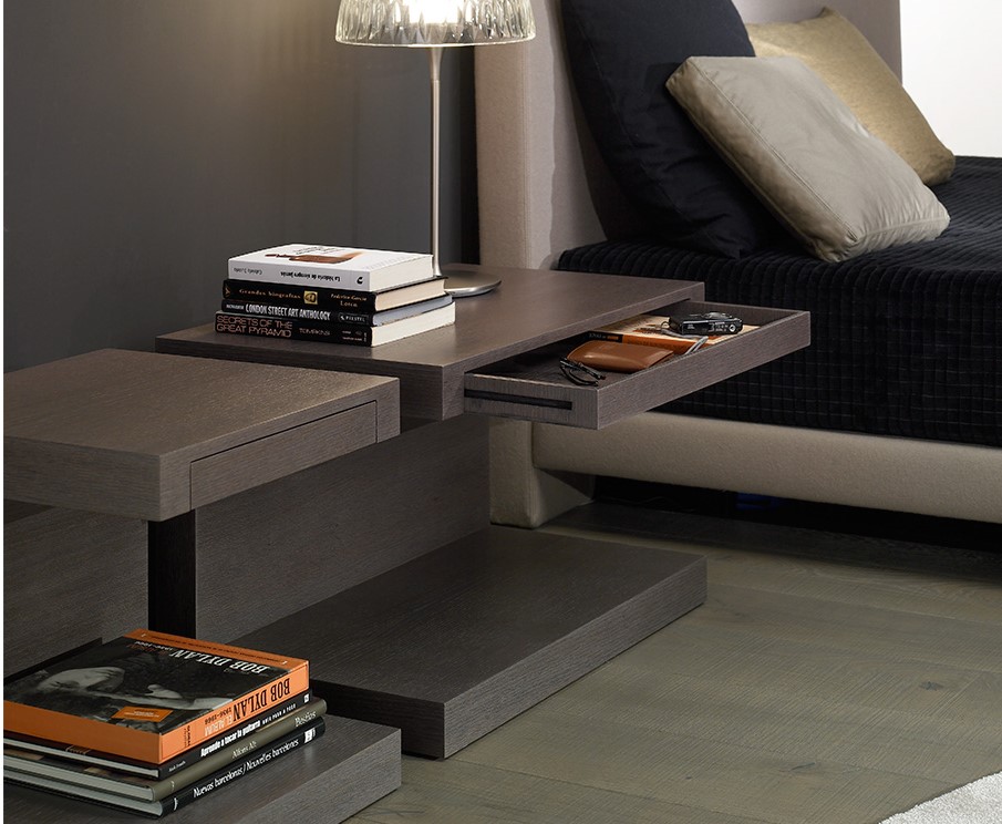 Прикроватные тумбочки Bergen изготовлены из элитных лиственных пород дерева и предлагаются в отделке из шпона дуба, включая интерьеры ящиков, с натуральной текстурой или лаковым покрытием. Они делают простоту достоинством. Доступны в двух размерах, выбор цвета, согласно каталогу.