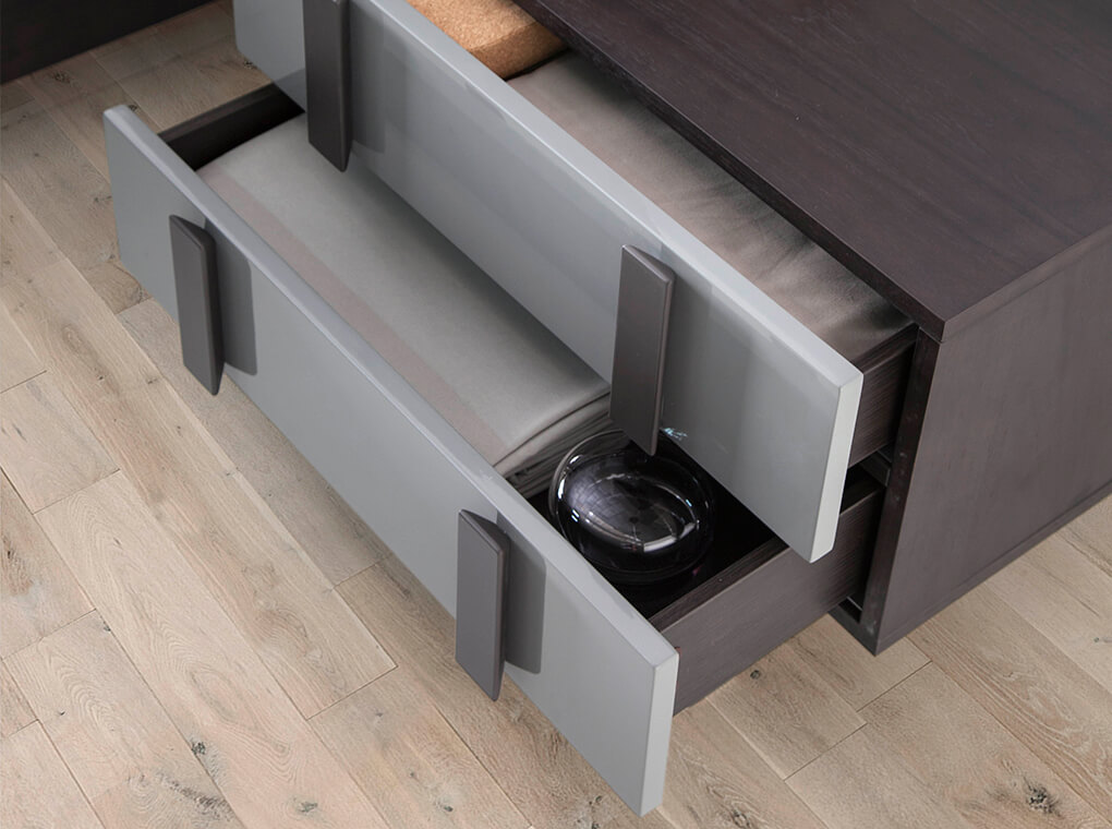 Тумбочка CP1706-H-GRIS (RAL7037) от фабрики Angel Cerda – сдержанный дизайн, практичное исполнение. Тумбочка CP1706-H-GRIS – это безусловно универсальная модель для городских интерьеров. Четкая геометрия форм, современный подход к исполнению, популярные в модерне цвета – все это делает изделие востребованным среди поклонников европейской мебели. Тумбочка одинаково хорошо будет гармонировать как со светлым, так и с темным интерьером. Эта модель имеет сборную конструкцию. В каркас прямоугольной формы вставляются два ящика одинаковой высоты, а снизу прикручивается металлическая опора. Материал изготовления тумбы – МДФ. В базовом заводском варианте каркас имеет цвет венге, а ящики – бежево-серые с глянцевым покрытием. Они оснащены доводчиками, имеют прочные металлические направляющие. Металлические ручки расположены таким образом, что образуют единую линию с ножками. Это выглядит оригинально и создает обманчивое убеждение в том, что тумба зажата рамой. Опора поставляется отдельно, поэтому потребуется самостоятельная сборка (крепеж и инструкция входят в комплектацию). Размеры: высота – 36 см, ширина – 66 см, глубина – 51 см. Вес тумбы составляет 19 кг. В коллекцию корпусной мебели фабрики Angel Cerda включен комод с таким же дизайном.