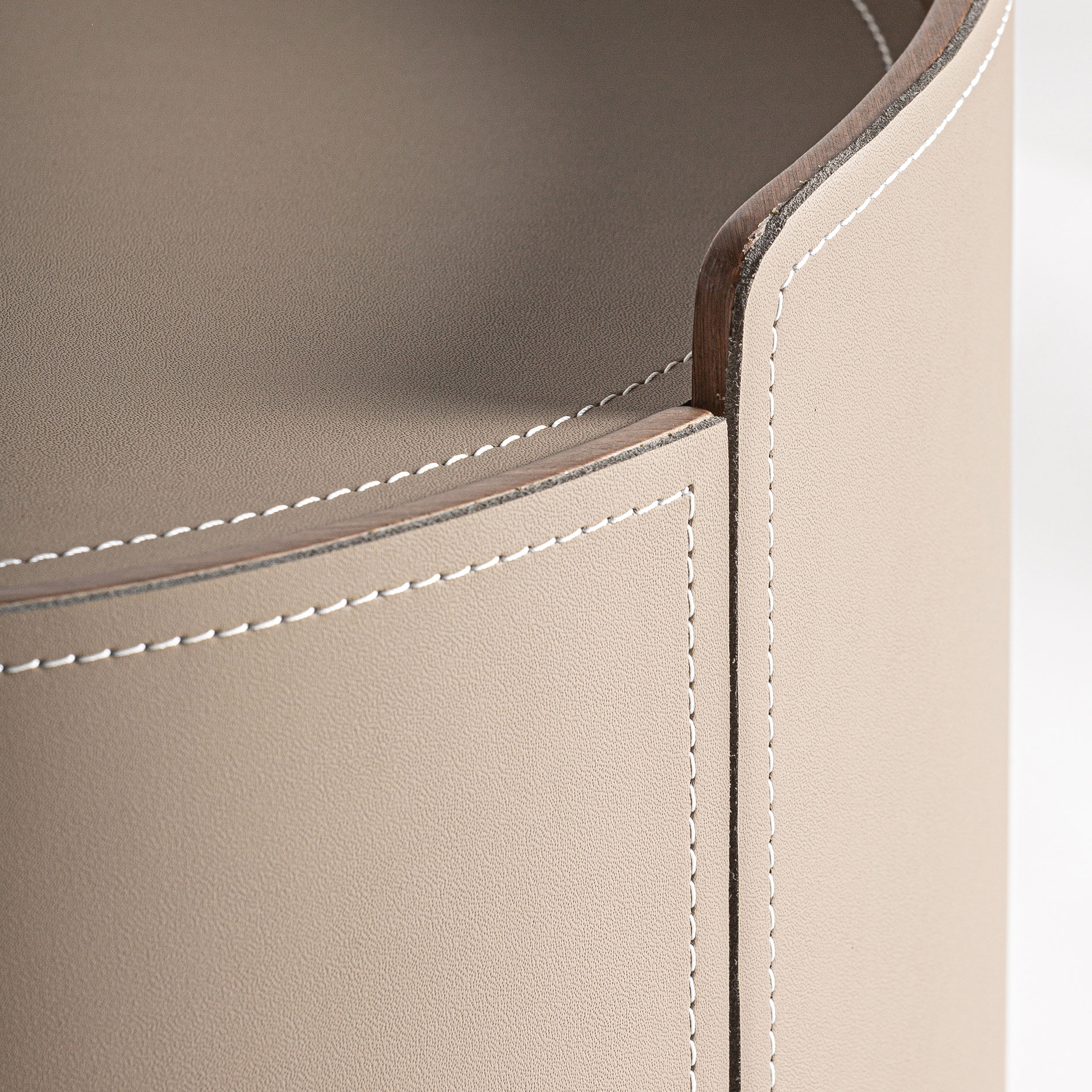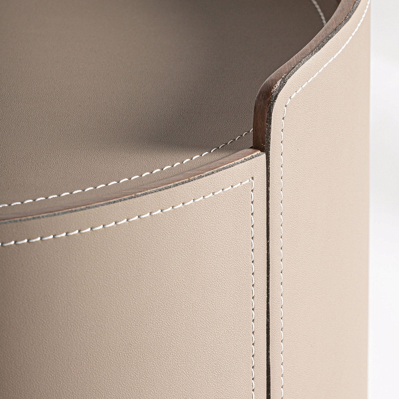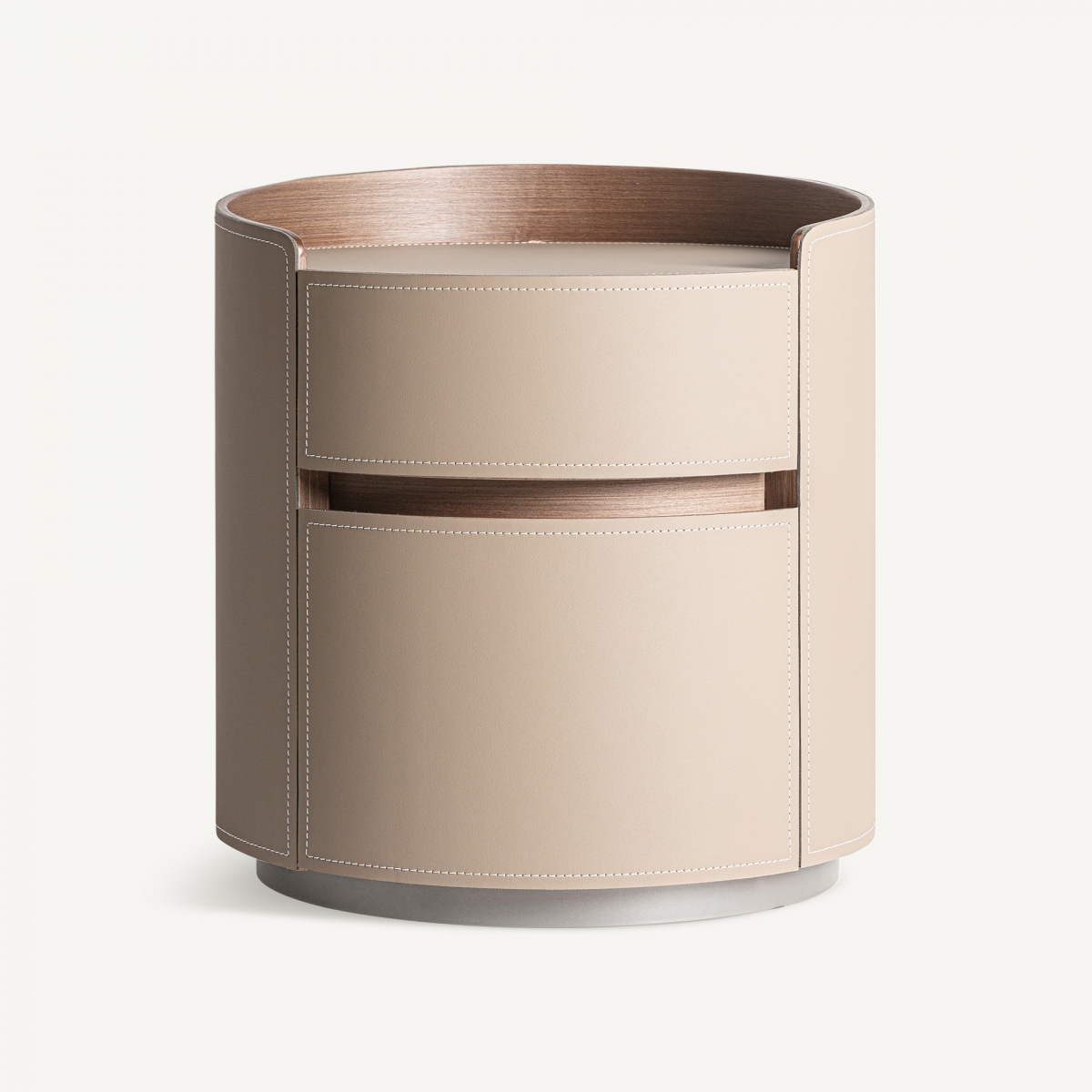 Тумбочка Кандерн, светло-коричневого цвета, стиль арт-деко. Изготовлен из фанеры в сочетании с кожзамом. Ширина: 45 см, Глубина: 45 см, Высота: 48 см.