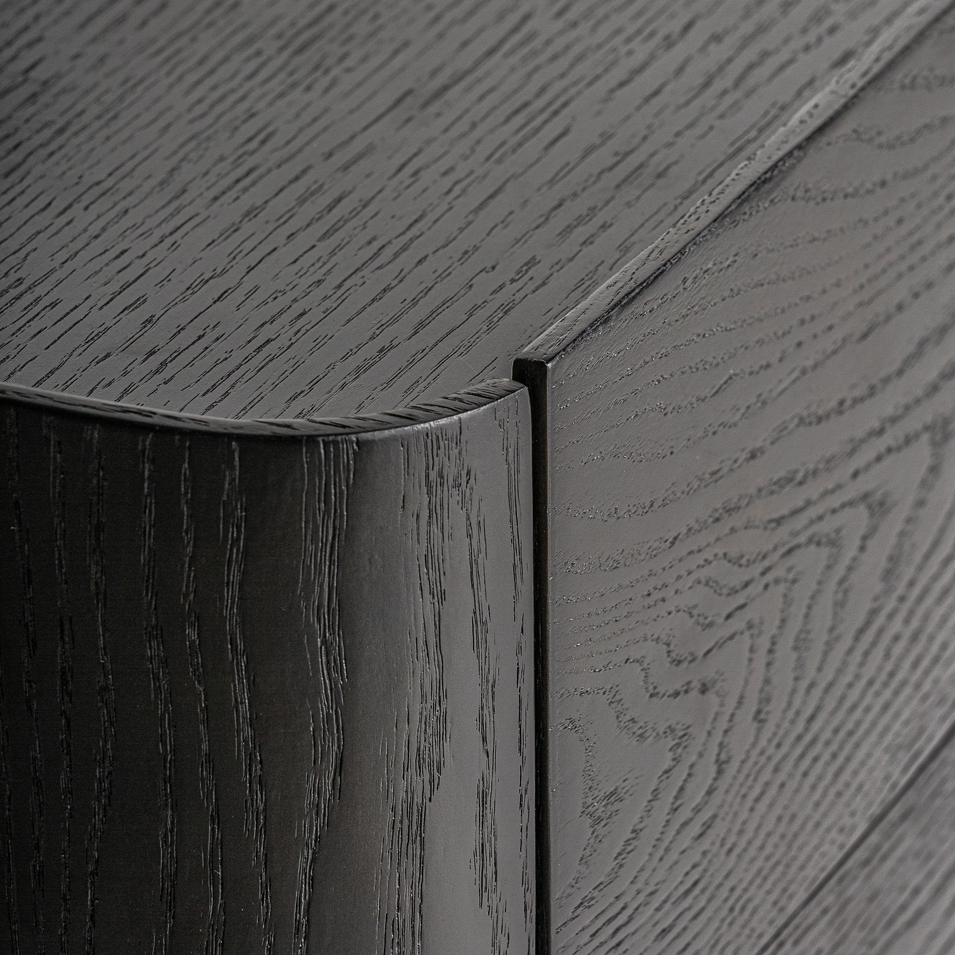 Тумбочка Wolfach, черная, в стиле арт-деко. Изготовлен из фанеры в сочетании с дубовым шпоном. Ширина: 55 см, Глубина: 42 см, Высота: 48 см.