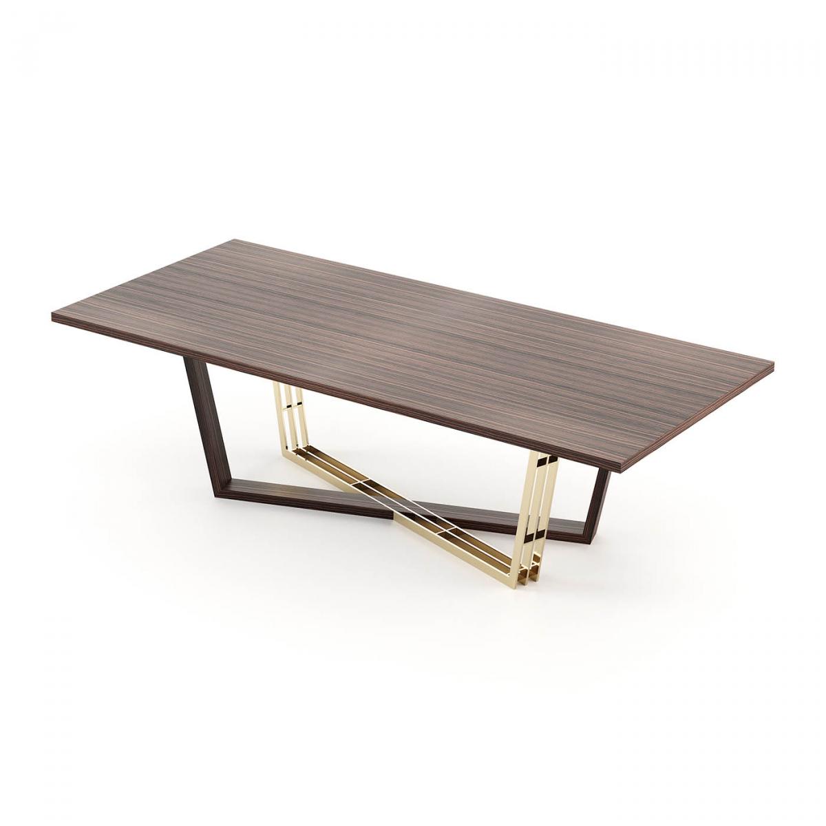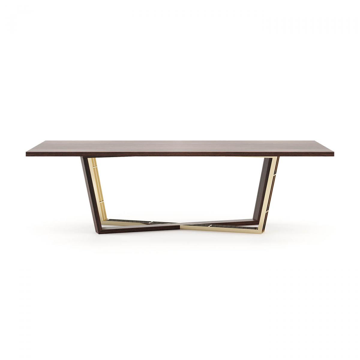 Alison – впечатляющий обеденный стол с деревянной столешницей и основанием, украшенным металлическими деталями. Его асимметричная структура создает индивидуальность, а сочетание текстур добавляет смелый оттенок в оформление, поэтому это изделие является неотъемлемой частью декора.