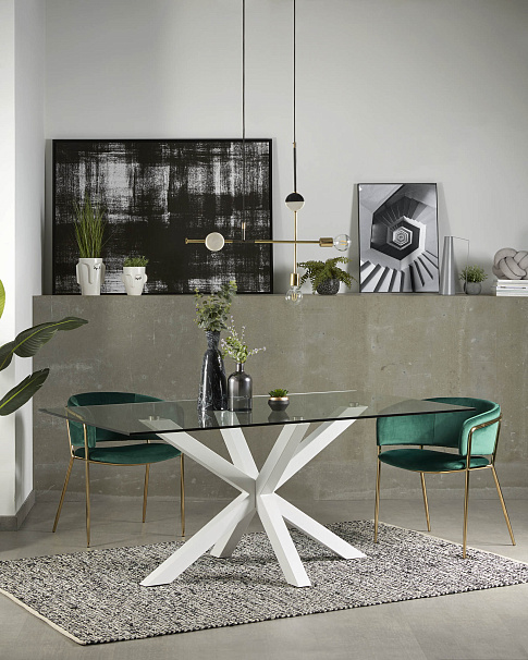Обеденный стол Arya стеклянный с белыми стальными ножками 180x100