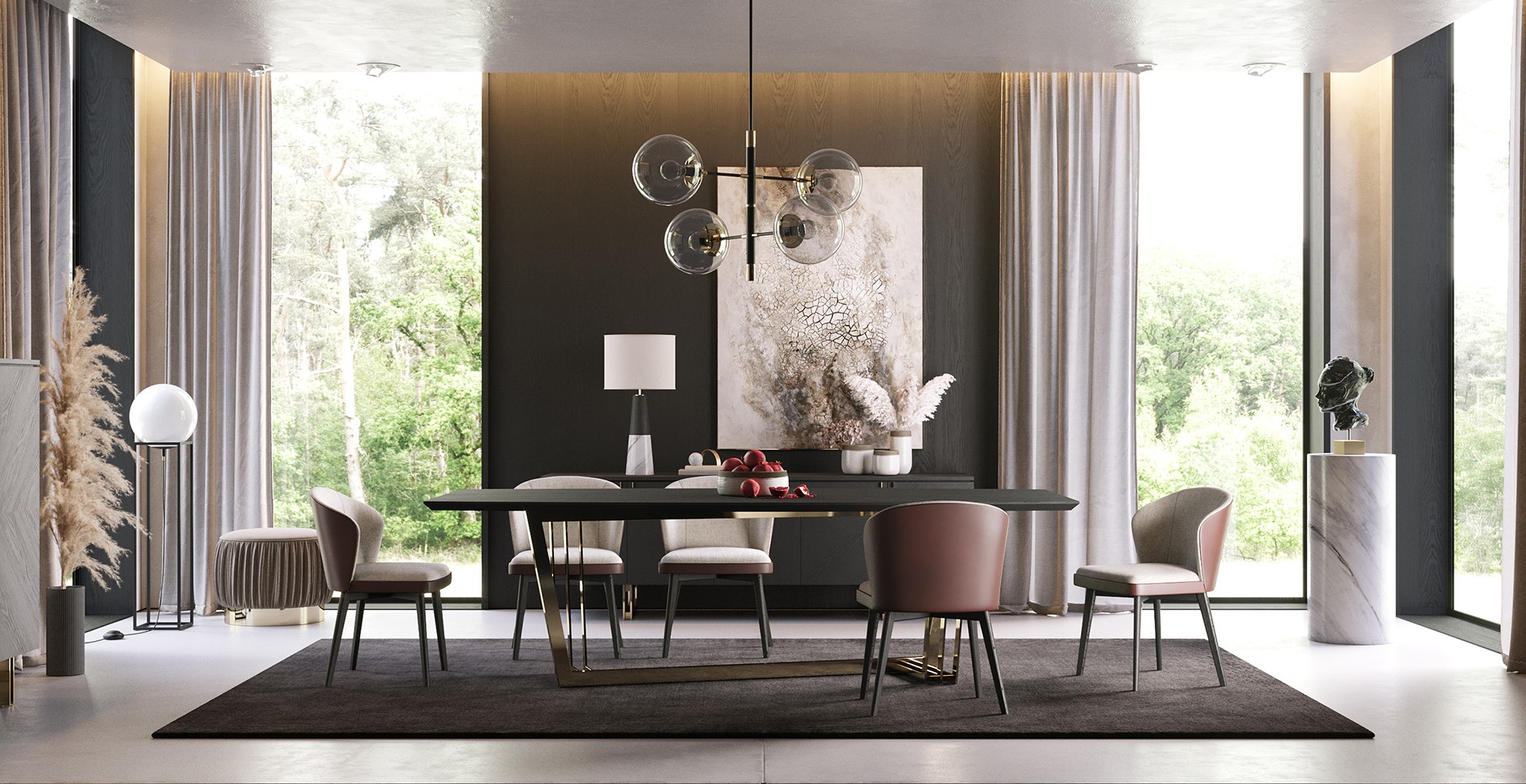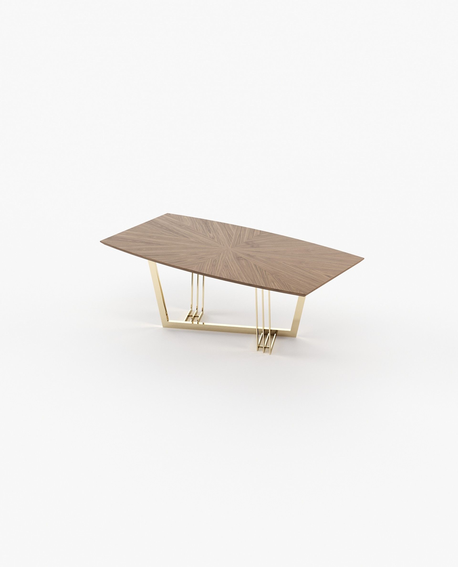 Деревянный обеденный стол D’Arc с металлической структурой. Прямоугольная столешница с круглыми краями гармонично смотрится с Z-образной структурой, которая создана в виде трех маленьких полосок.