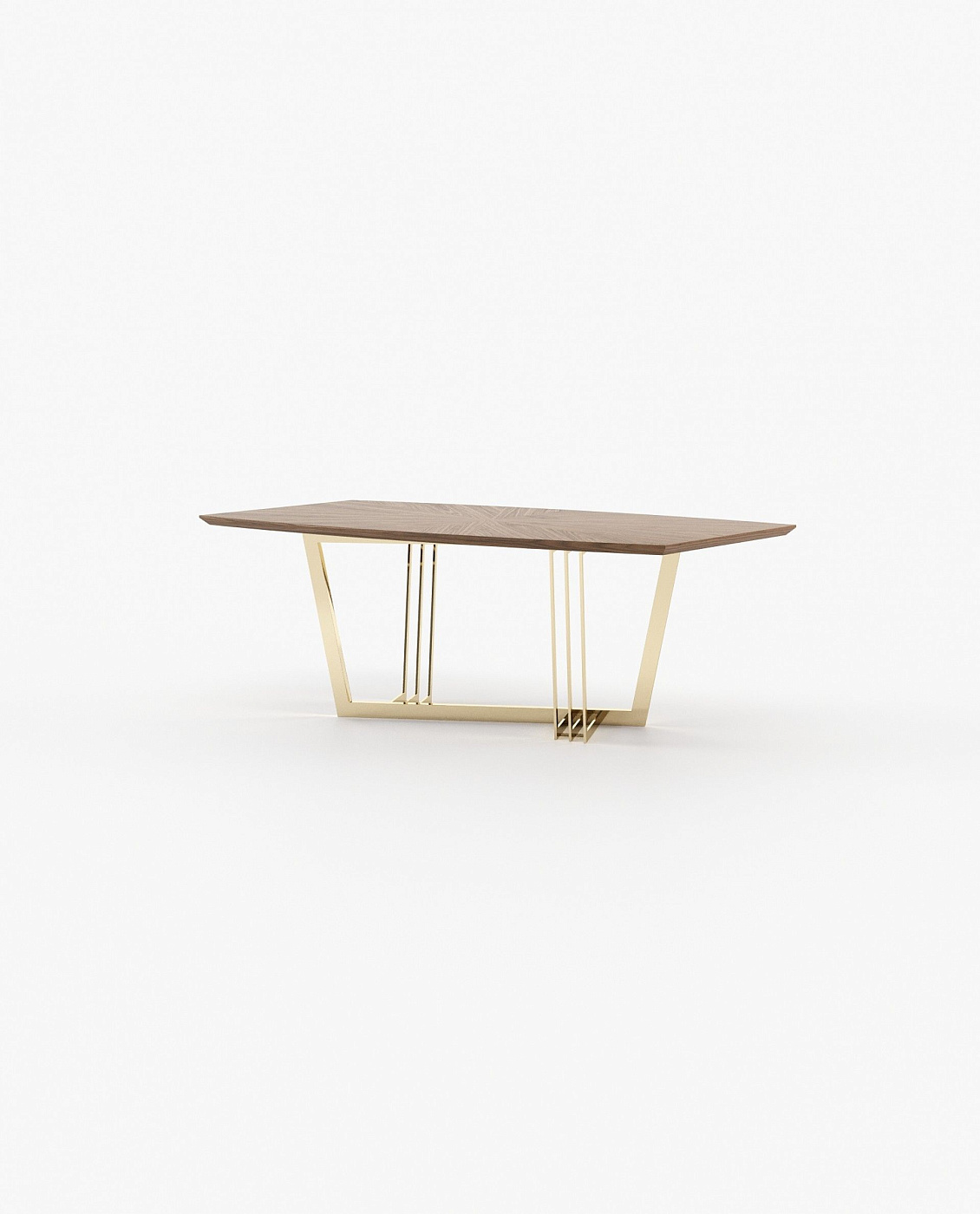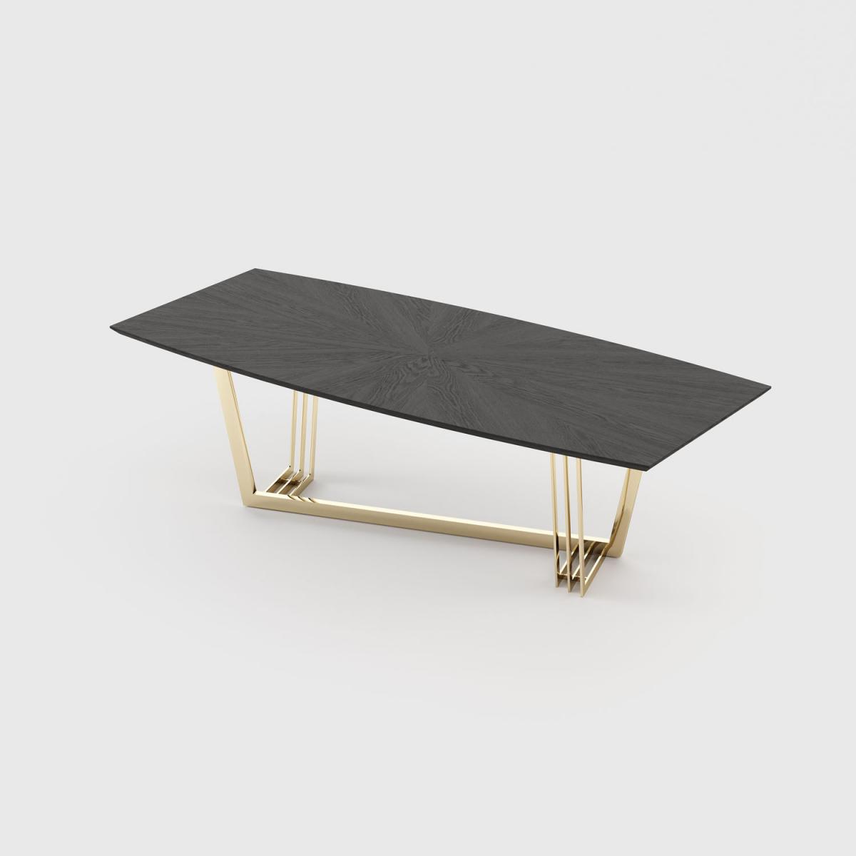 Деревянный обеденный стол D’Arc с металлической структурой. Прямоугольная столешница с круглыми краями гармонично смотрится с Z-образной структурой, которая создана в виде трех маленьких полосок.
