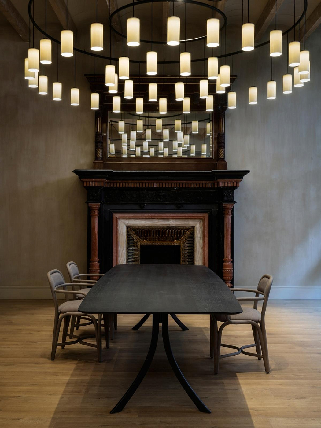 Столешница изготовлена из массива дерева европейских дубов сечением 22 мм/0,86 дюйма. Структура сделанная из высокоомного алюминиевого профиля и алюминиевых ножек. Коллекция также доступна в лакированном исполнении (МДФ) и в европейской дубовой фанере.