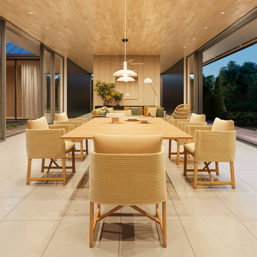 Giro - очень универсальная и широкая коллекция, состоящая из кресел, столов, диванов и клубных кресел, а также журнальных столиков. Сочетание с тиком придает ему очень естественный, аутентичный вид. Материалы являются главными героями коллекции, которая кажется почти не продуманной, она естественно сочетается друг с другом. Поэтому очень важно уделять внимание деталям. Вот почему мы уделяли большое внимание внутренним качествам каждого материала: рисунку веревки (скрученной), ее толщине, строчке и деталям шитья. Но также и столярные детали, определение радиуса кромки и сечений тика. В Giro у нас есть некоторое разнообразие форм, текстур и материалов (смотрите разницу между элементами для сидения и журнальными столиками). И все же все предметы гармонично сочетаются друг с другом, создавая теплую, тактильную и приятную атмосферу. Giro - это коллекция, которая может гармонично вписываться в интерьеры и экстерьеры благодаря своей тактильности и чистым линиям. Это каким-то образом связано с архитектурными работами самого Винсента.