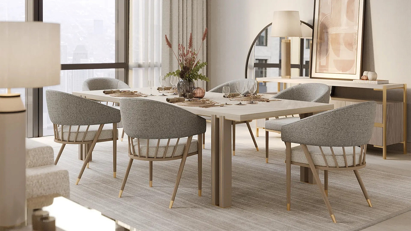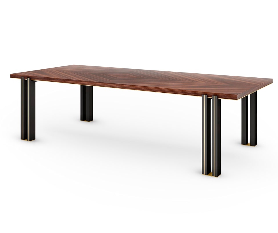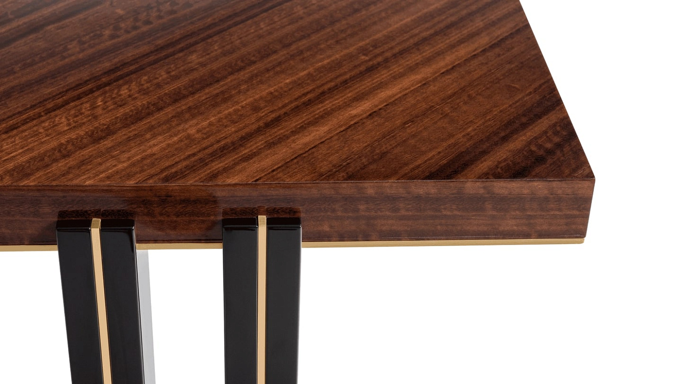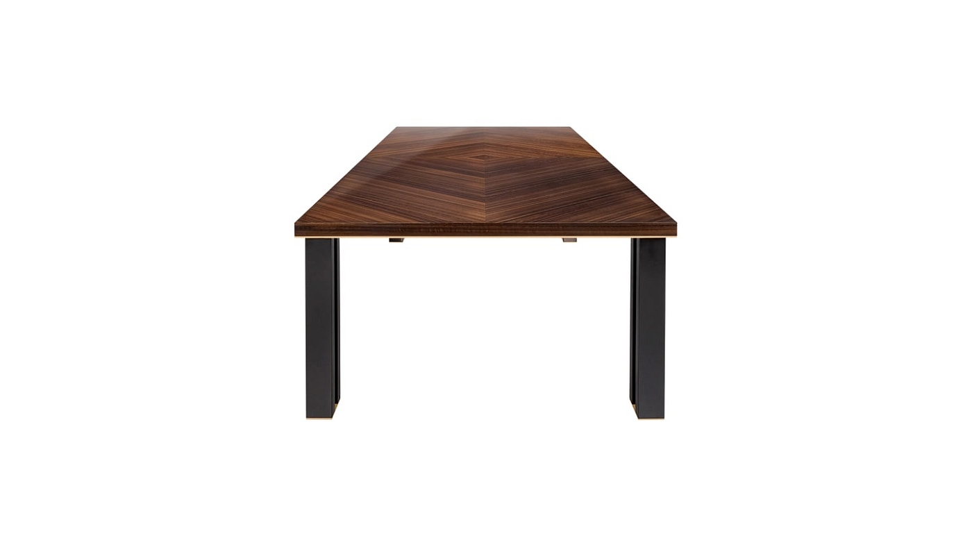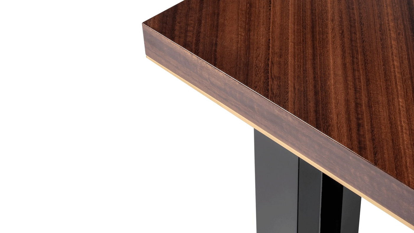 Дизайн мебели FRATO известен своими неожиданными деталями. В случае обеденного стола KALMAR особое внимание было уделено двойным ножкам, выполненным из смеси глянцевого лака и тонкой латуни.