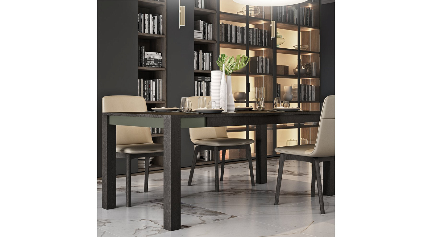 Раздвижной стол в стиле столовой позволяет увеличить размер стола еще на 90 см. Использование контрастных деталей в дизайне создает элемент сочетания, который позволяет интегрировать его в интерьер и украсить его.