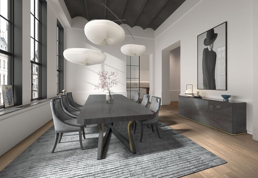 Выберите место для встречи за столом, который создаст атмосферу уверенности и роскоши. И снова завораживающий дизайн в виде изумрудных звездочек делает это эффектное изделие одновременно элегантным и смелым. Деревянная столешница. Акценты из нержавеющей стали на основании