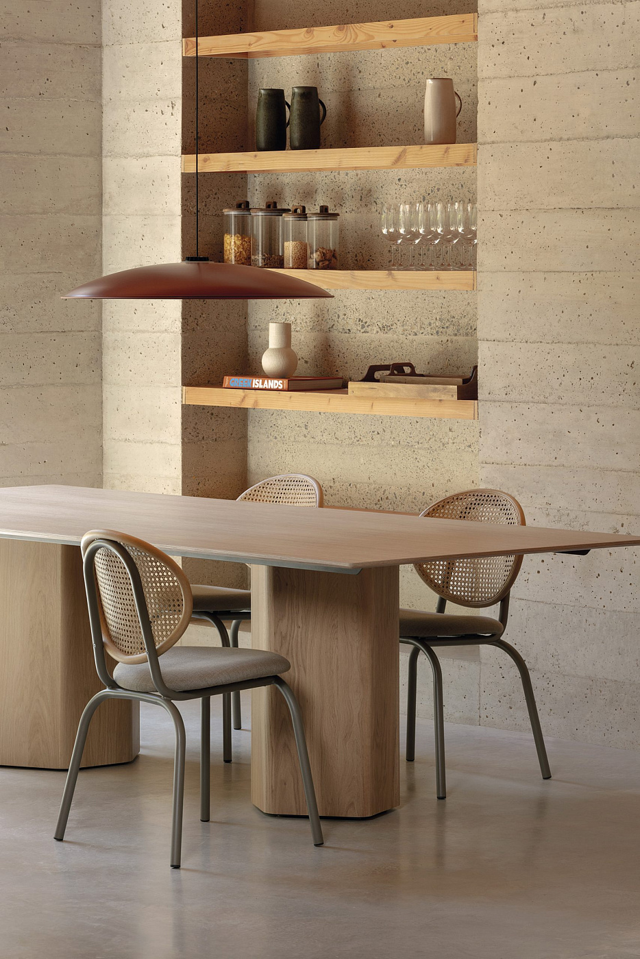 Прямоугольный обеденный стол Talo для помещений Altherr Désile Park. 2023 Столешница и ножки из массива европейского дуба с сечением 21 мм/0,83 дюйма. Основание оснащено металлическим противовесом для обеспечения устойчивости стола. Коллекция также доступна в лакированной версии (МДФ) и в шпоне европейского дуба.