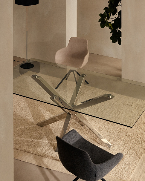 Стеклянный стол Arya с ножками из хромированной стали 200x100