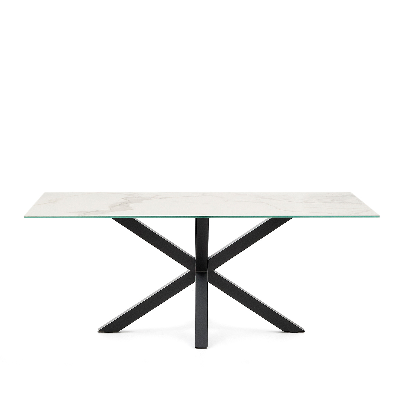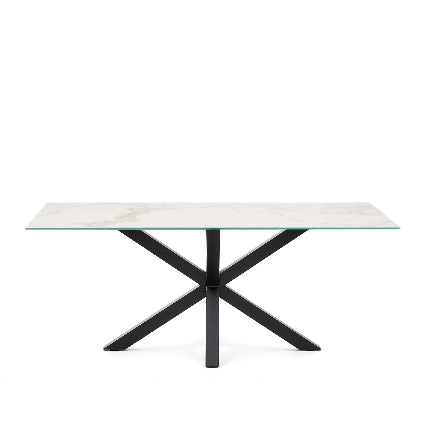 Arya Стол обеденный 200x100 черный с керамической столешницей Kalos Blanco