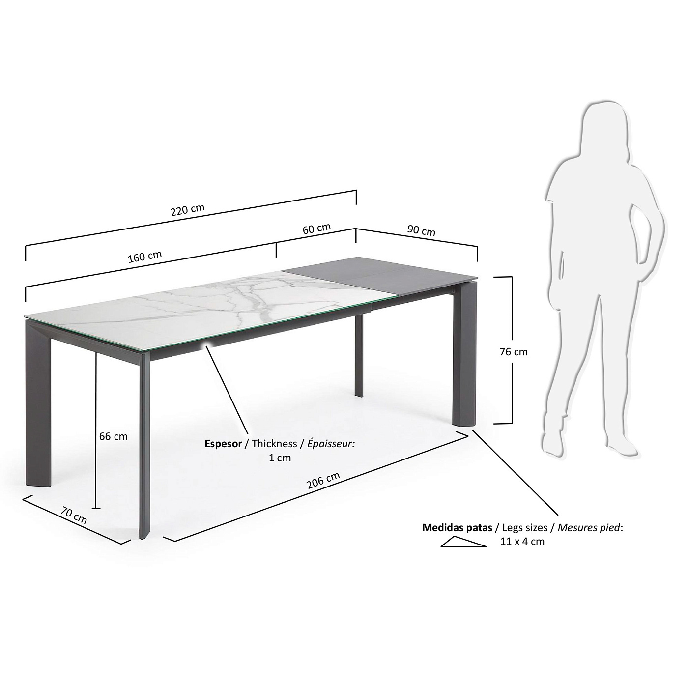 Стол Atta 160 (220) x90 антрацит, керамика