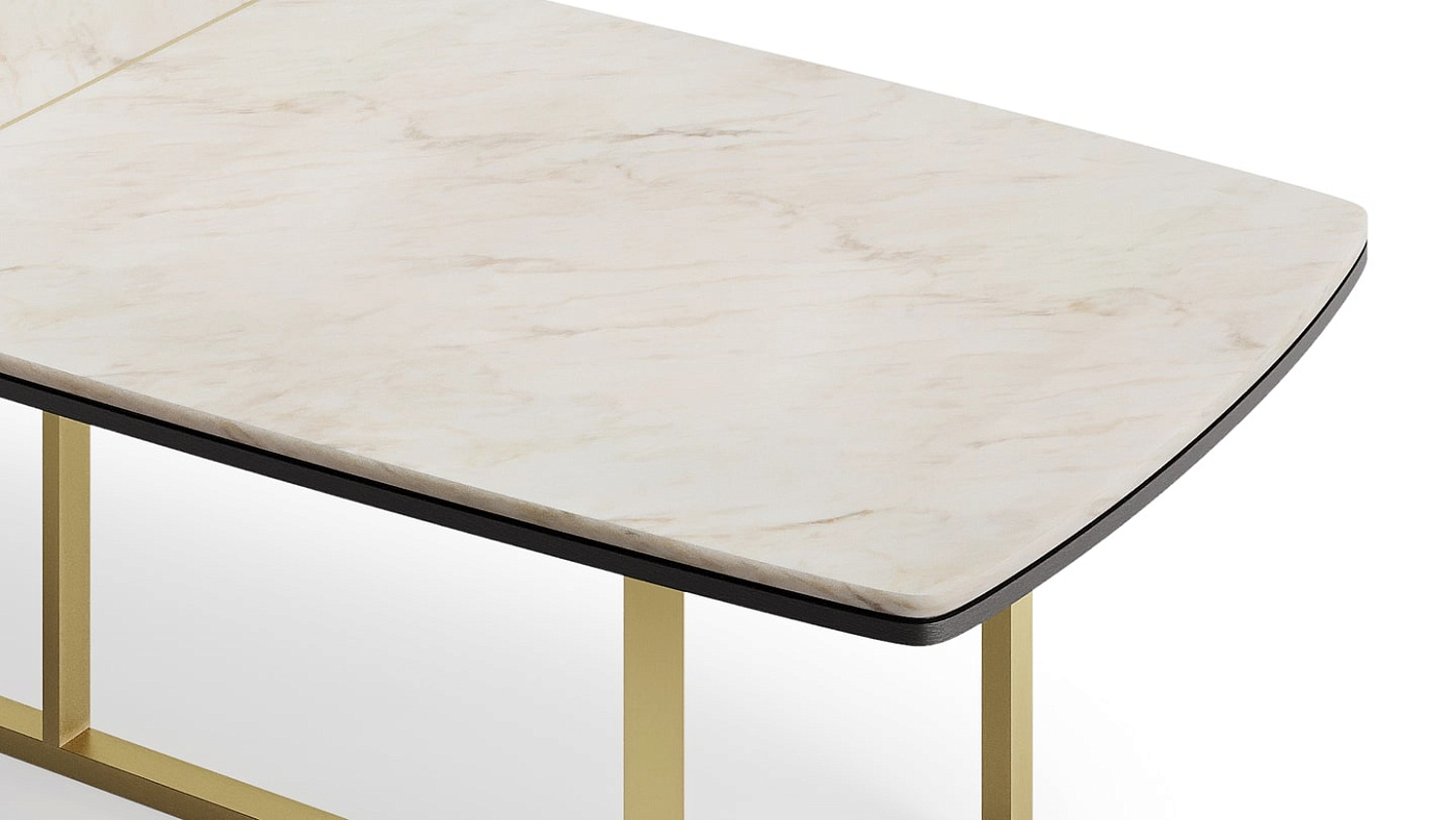 Соберите друзей и семью за обеденным столом ARENDAL II. Это идеальное место для развлечений, с элегантной столешницей из мрамора и основанием из матовой латуни.