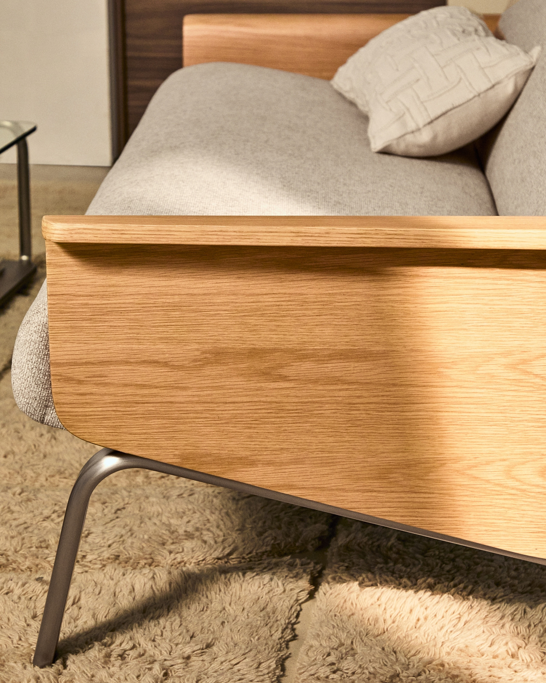 2-местный диван Amsen бежевый с подлокотниками из шпона дуба