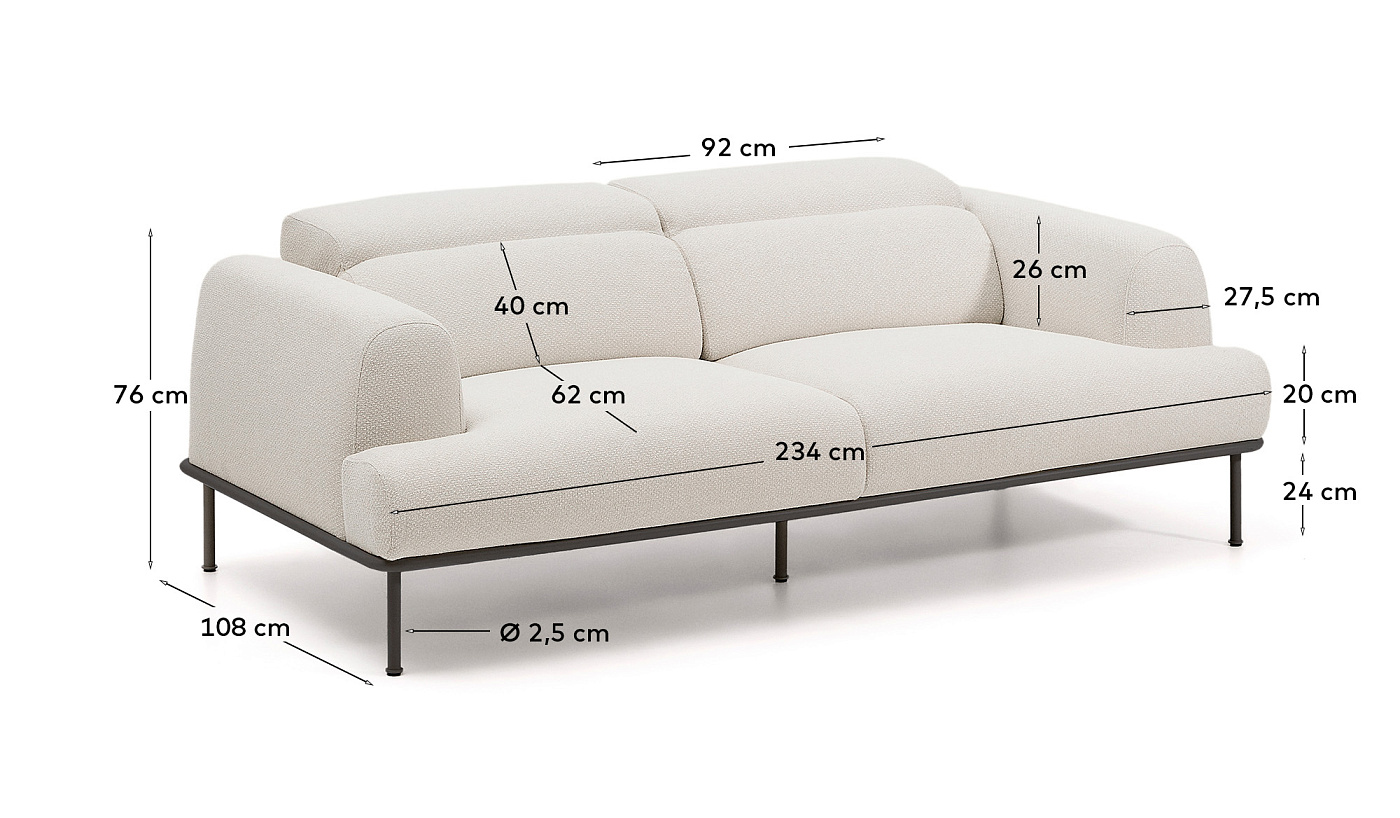 3-местный диван Aurum цвета экрю с откидывающимся подголовником