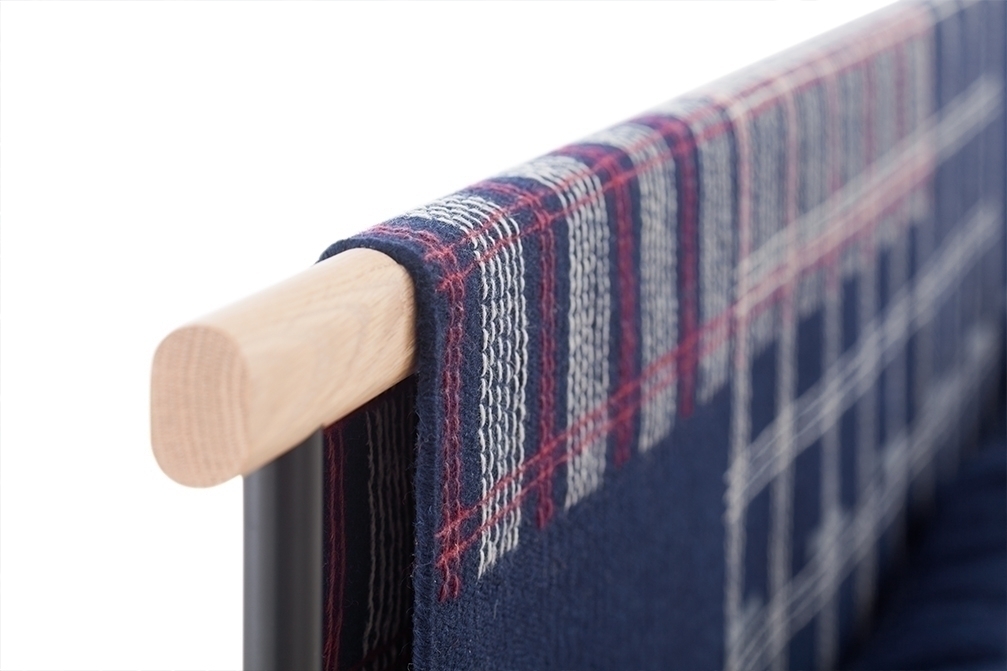 100% шерсть. Древесина дуба с матовой отделкой и рама из термолакированной стали. Наполнитель из поролона.