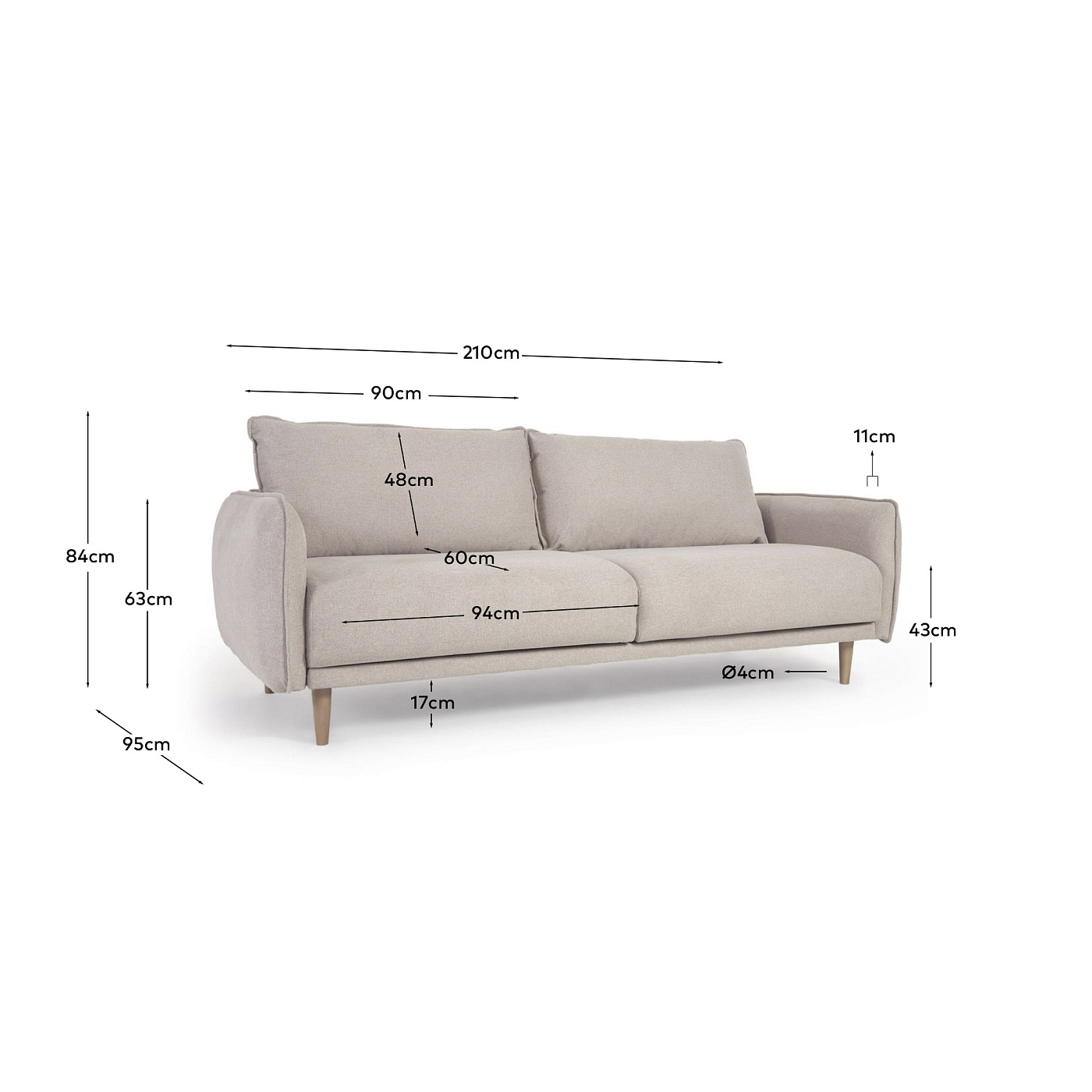 Carlota 3-местный диван бежевого цвета 210 см