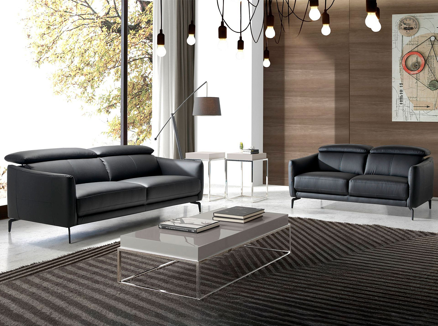 Диван 2-х местный 6058/5359-2P черный кожаный