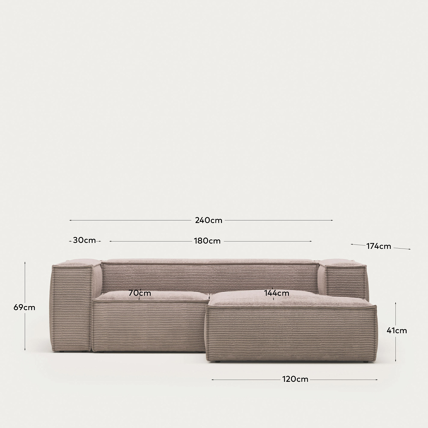 Диван 2х местный Blok правый шезлонг розовый вельвет
