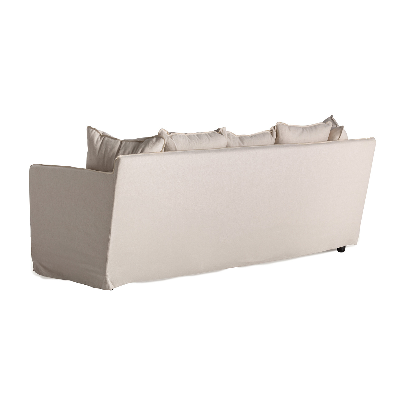 Диван из бежевого полиэстера в сочетании с деревом. Ширина: 216 см, Глубина: 94 см, Высота: 93 см