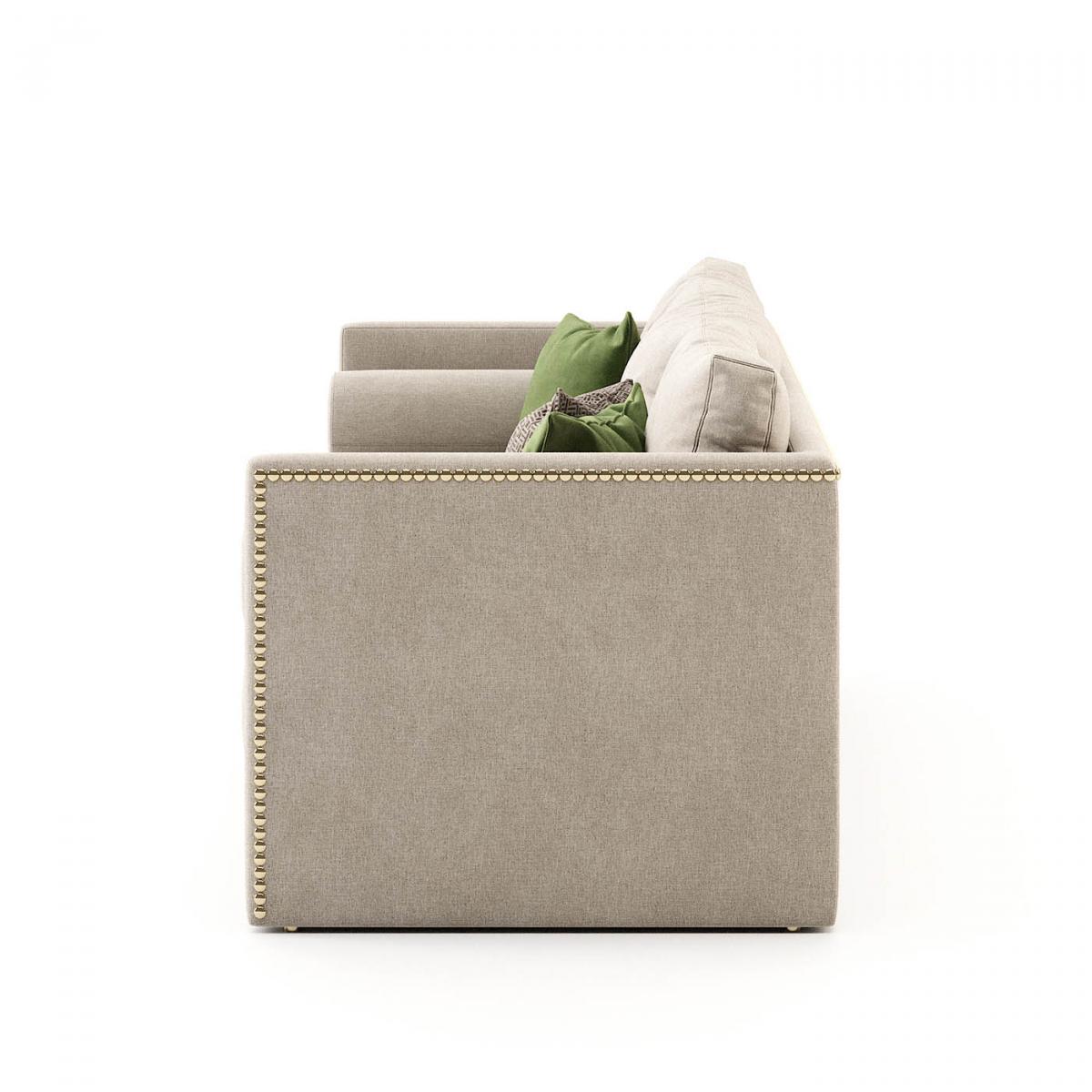 Chanel-это диван с мягкой обивкой, подшитый линией заклепок по краям, которые обеспечивают современный и изысканный штрих. Минималистский дизайн, который может соответствовать любому дизайну интерьера.