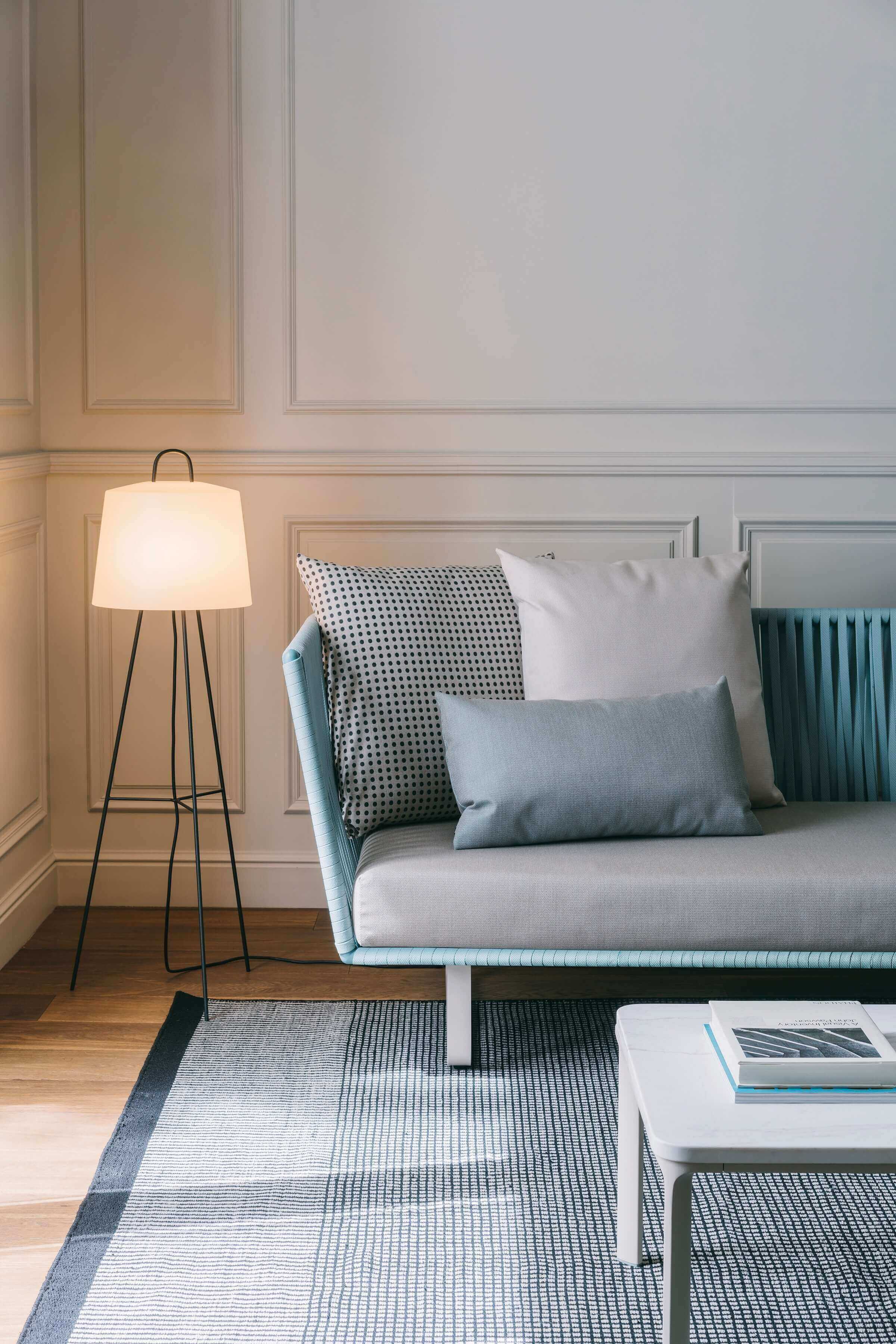 Для Kettal Bitta характерно сочетание алюминиевых и тиковых рам, сидений из плетеного полиэстера и удобных подушек, столешниц из тикового дерева или камня - и все это с использованием всех водонепроницаемых материалов. “Намерение дизайнера состояло в том, чтобы создать плотную оплетку, которая все еще пропускала бы воздух, напоминающую оплетку канатов, используемых для швартовки лодок (отсюда и название Bitta, что в переводе с итальянского означает "швартовка"), благодаря чему изделия выглядят легкими, но в то же время они выглядят прямо как уютные гнездышки в естественных тонах, в которых можно посидеть и расслабиться.”