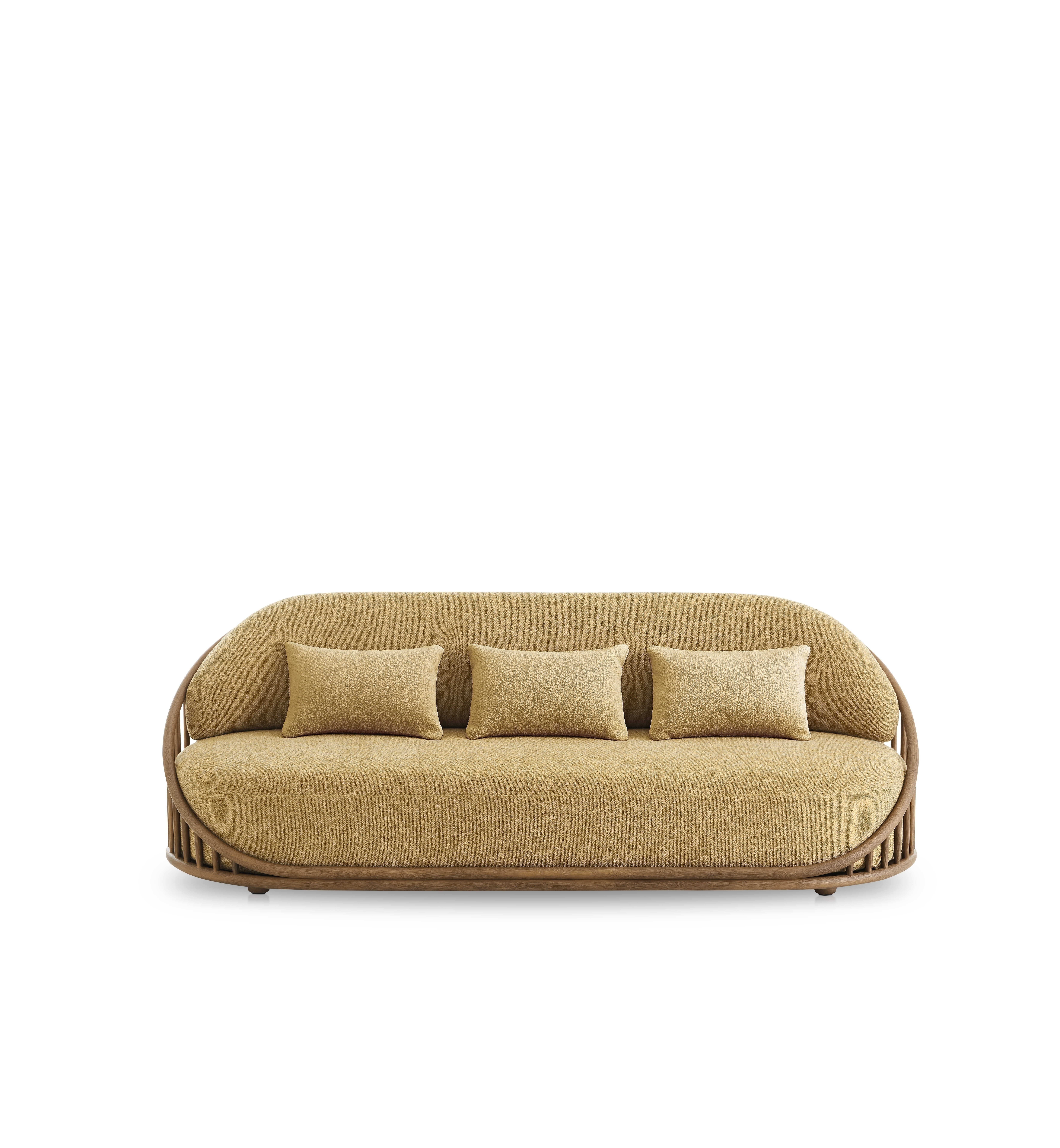 Диван с конструкцией из очищенного и тонированного натурального ротанга диаметром 34 мм/1,34". Спинка изготовлена из очищенного и тонированного натурального ротанга диаметром 20 мм/0,79 дюйма. Покрыт трехступенчатым покрытием на водной основе (краситель, базовое покрытие и верхнее покрытие), обладающим высокой устойчивостью к солнечному излучению благодаря УФ-фильтрам. Возможность персонализации с помощью широкого ассортимента высококачественных технических тканей. Защитные колпачки со съемными вставками из пластика. 3 свободные подушки 50x32 см/19,75"x 12,5" в комплекте.