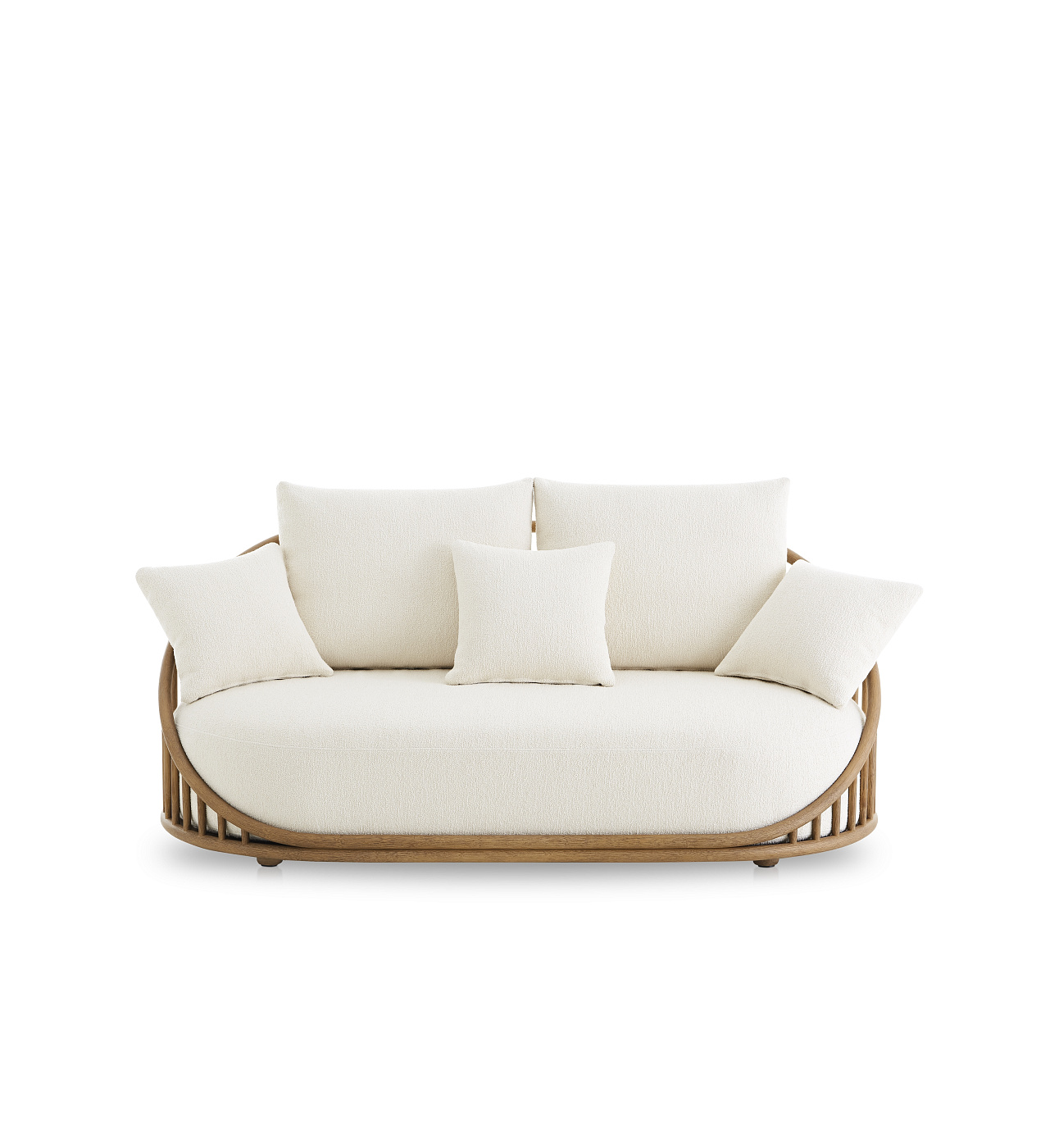 Двухместный диван с каркасом из очищенного и тонированного натурального ротанга диаметром 34 мм/1,34 дюйма. Спинка изготовлена из очищенного и тонированного натурального ротанга диаметром 20 мм/0,79 дюйма. Отделка трехступенчатым покрытием на водной основе (краска, базовый слой и верхний слой), обладающим высокой устойчивостью к солнечному излучению благодаря УФ-фильтрам. Возможность персонализации с помощью широкого ассортимента высококачественных технических тканей. Защитные колпачки со съемными вставками из пластикового войлока. В комплект входят 3 свободные подушки 45×45 см/17,75”x 17,75”.