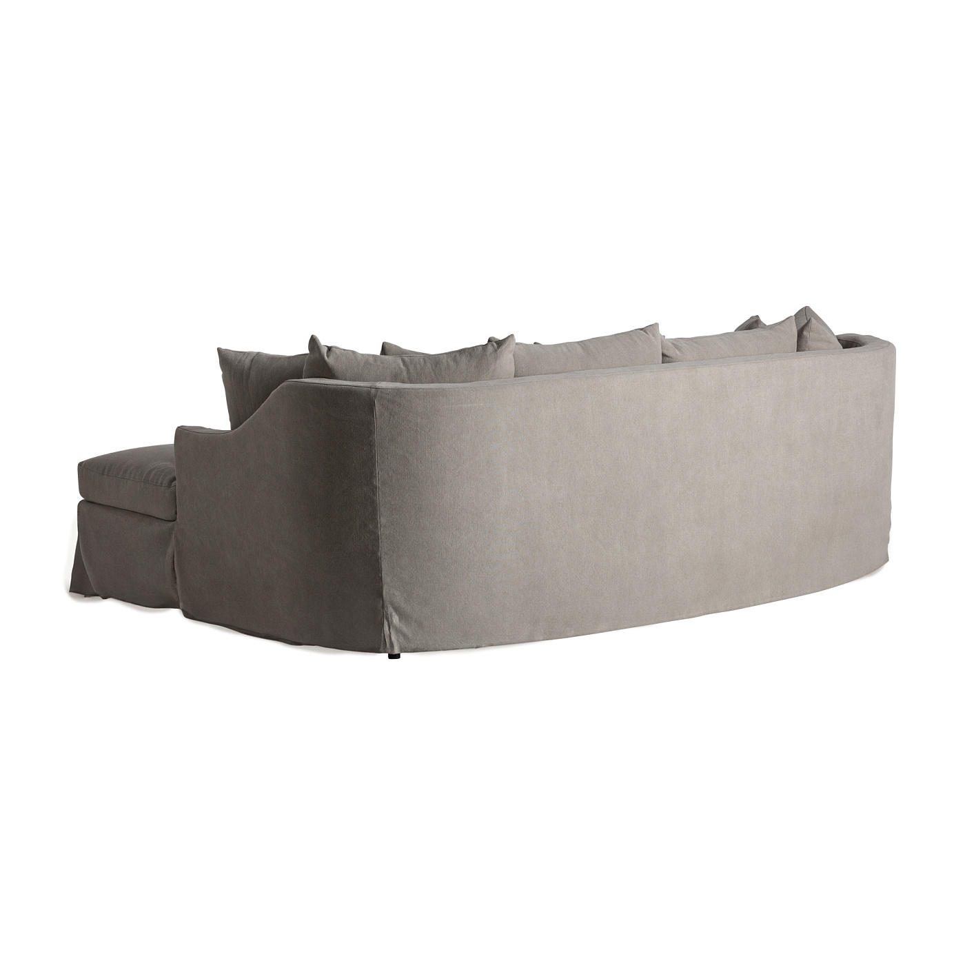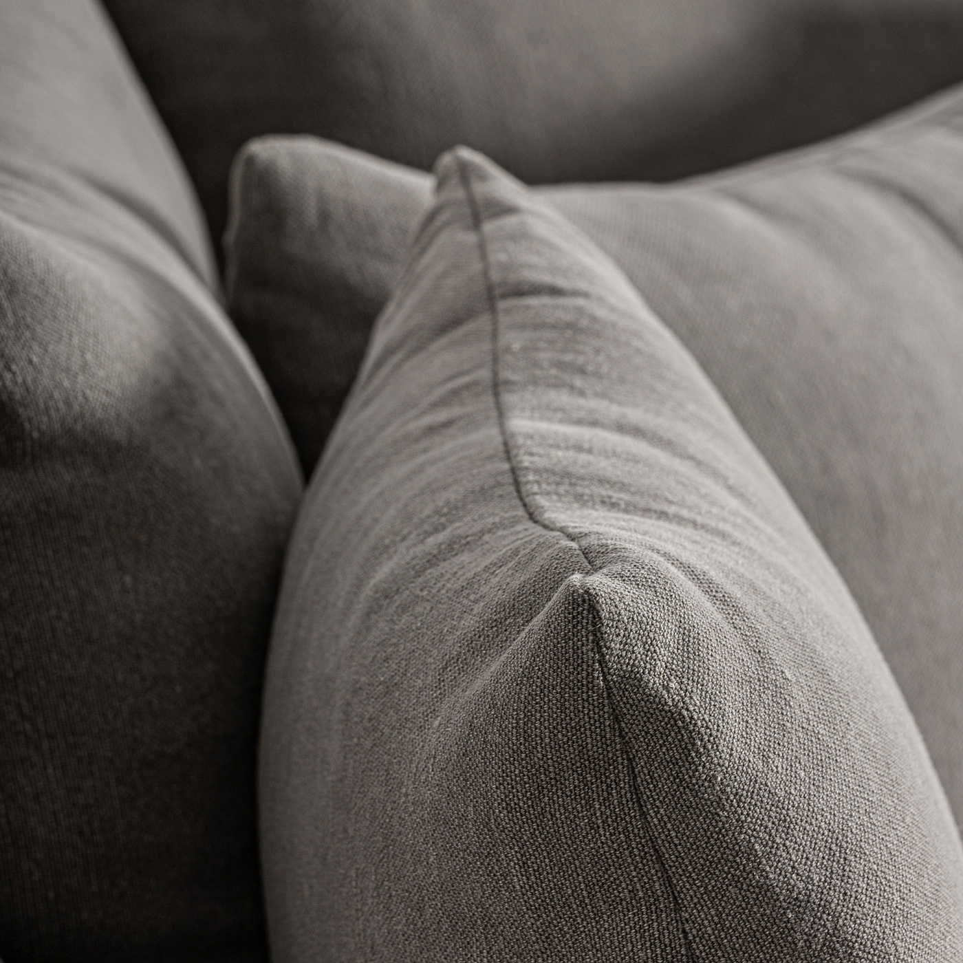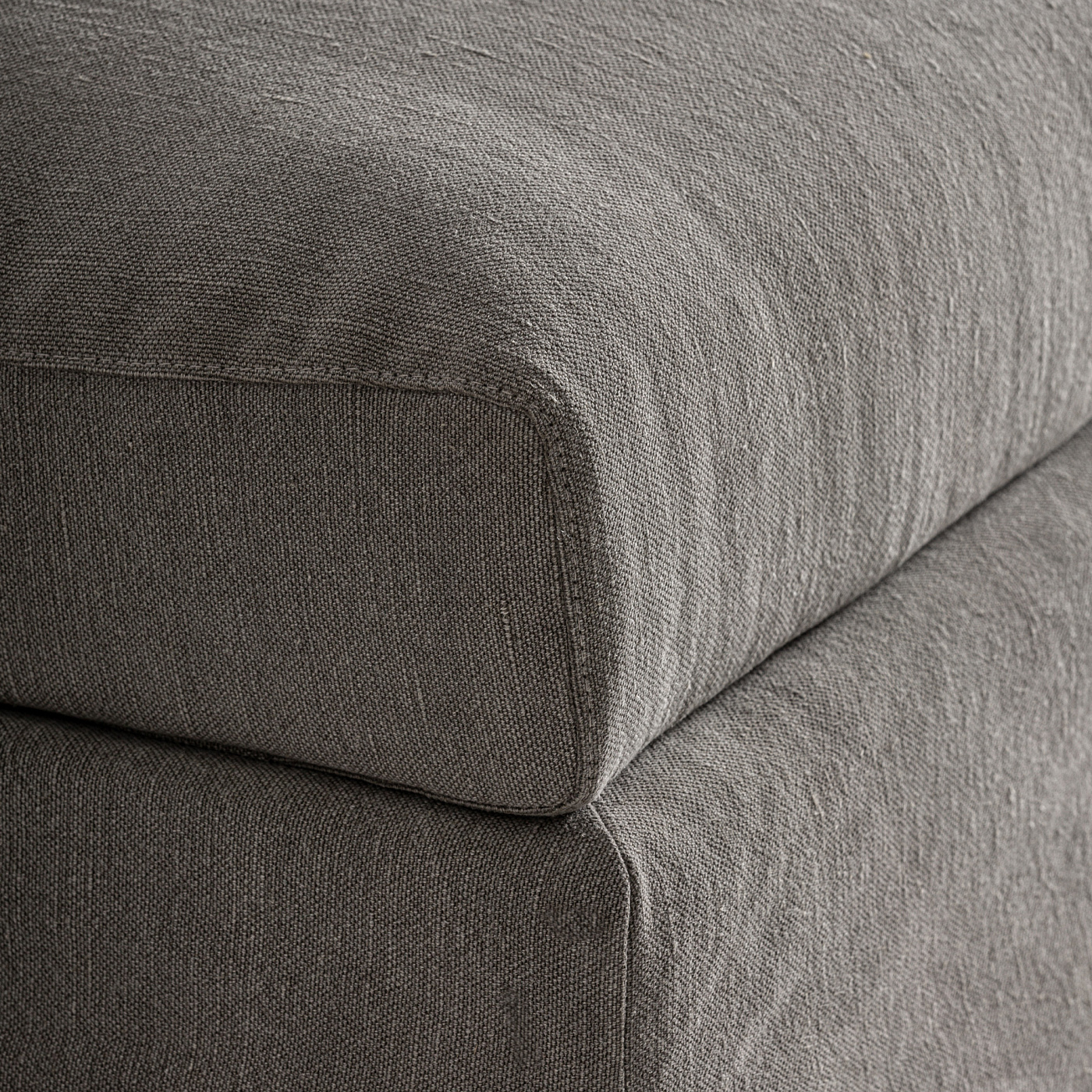 Диван Corbun в классическом стиле, выполнен из льна цвета тауп в сочетании с хлопком и поролоном. Чехол съёмный, складной. Ширина: 250 см, Глубина: 174 см, Высота: 91 см