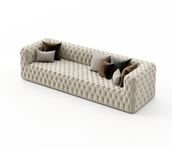 Havay-это мягкий диван на пуговицах, внушительная вещь, идеально подходящая для больших пространств. Его асимметричный дизайн придает ему тонкость, которая уравновешивает его обширные размеры и делает его универсальным для различных видов отделки.