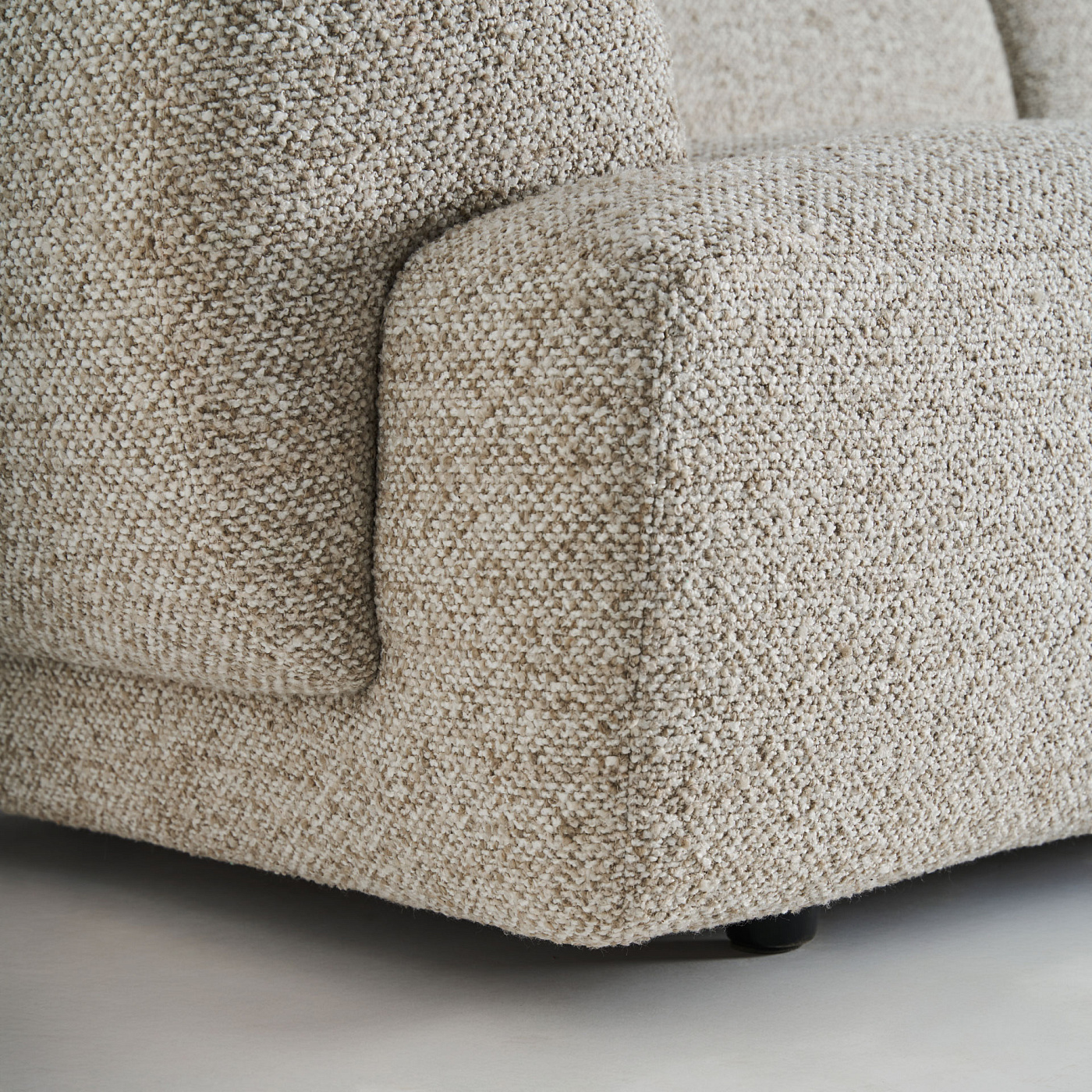 Диван Izernore выполнен в современном стиле из бежевого полиэстера в сочетании с лиственницей и поролоном. Чехол съёмный. Ширина: 262 см, Глубина: 106 см, Высота: 88 см